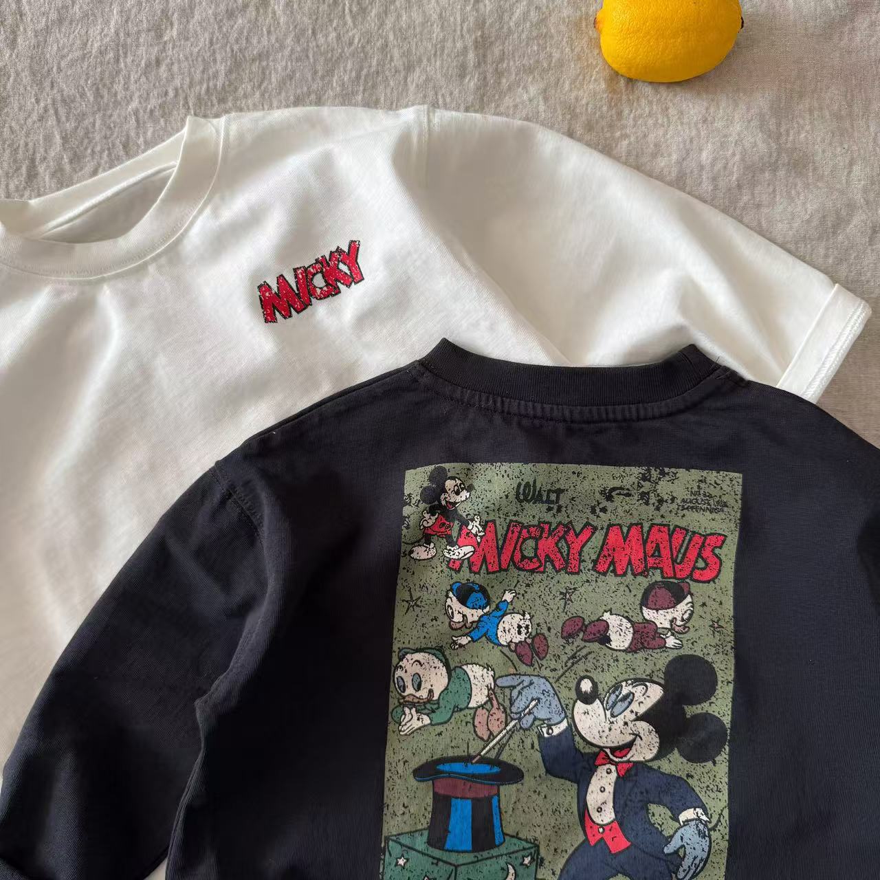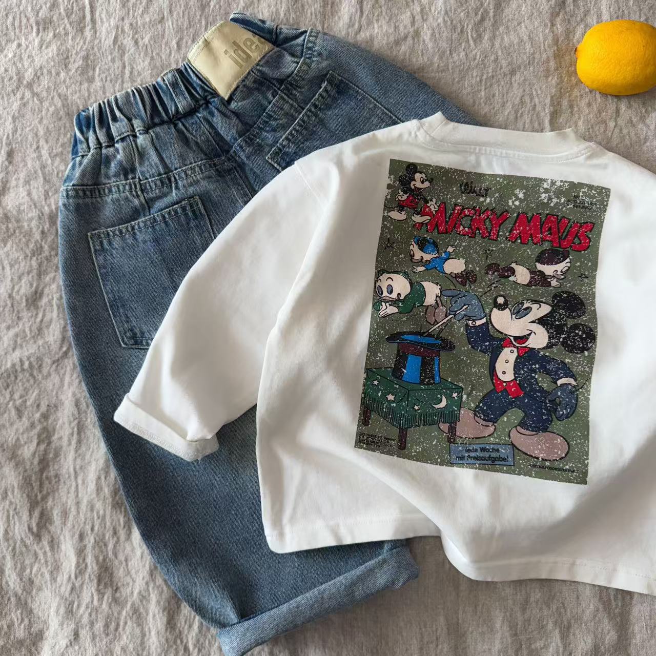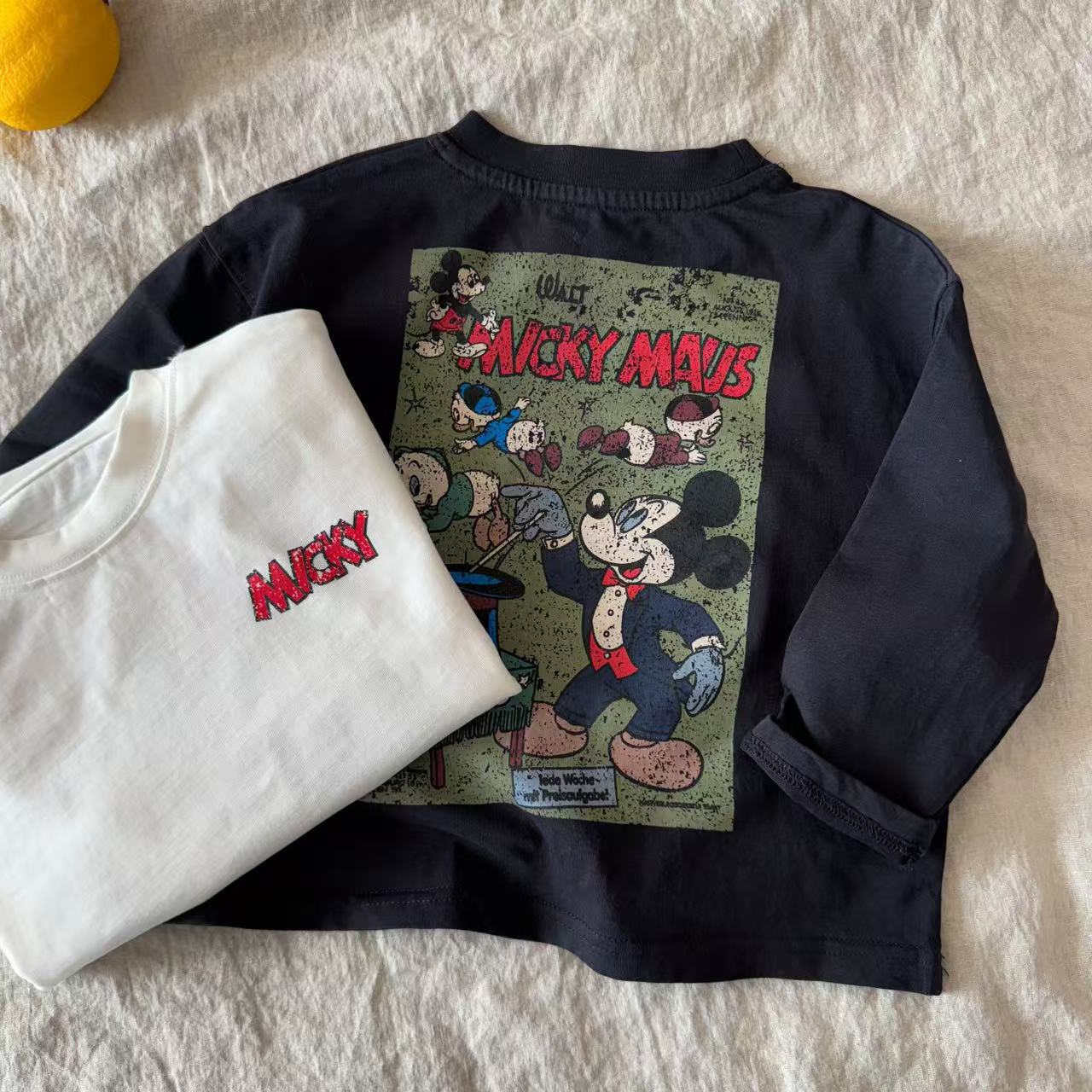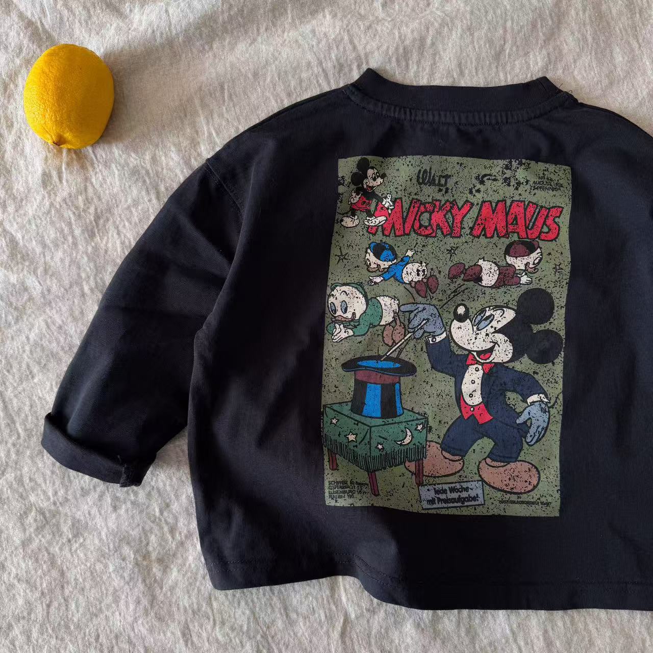 아동용 티셔츠 2025 가을 아동복 남아 여아 한국 스타일 루즈핏 프린트 빈티지 캐주얼 만능 상의 순면