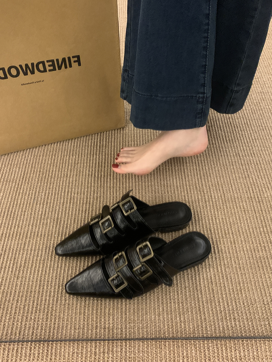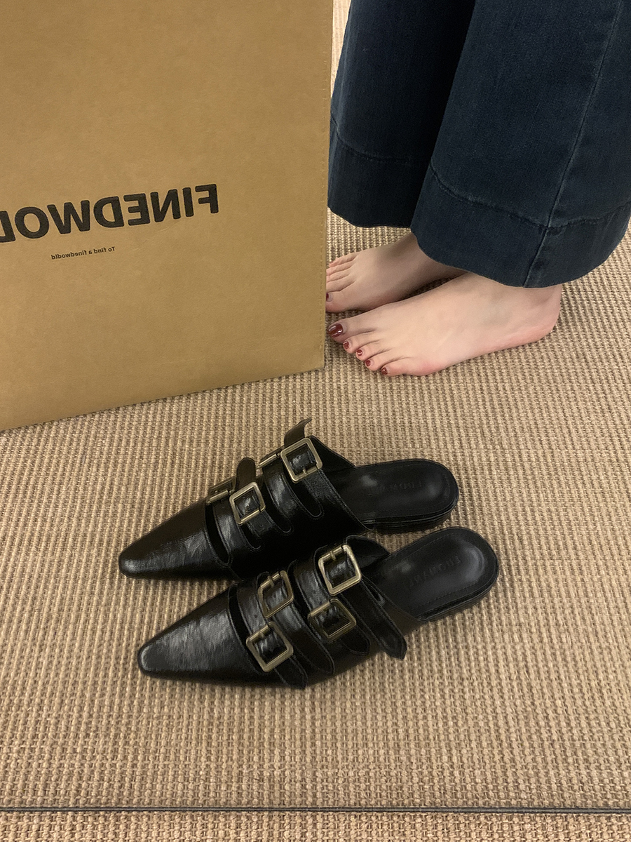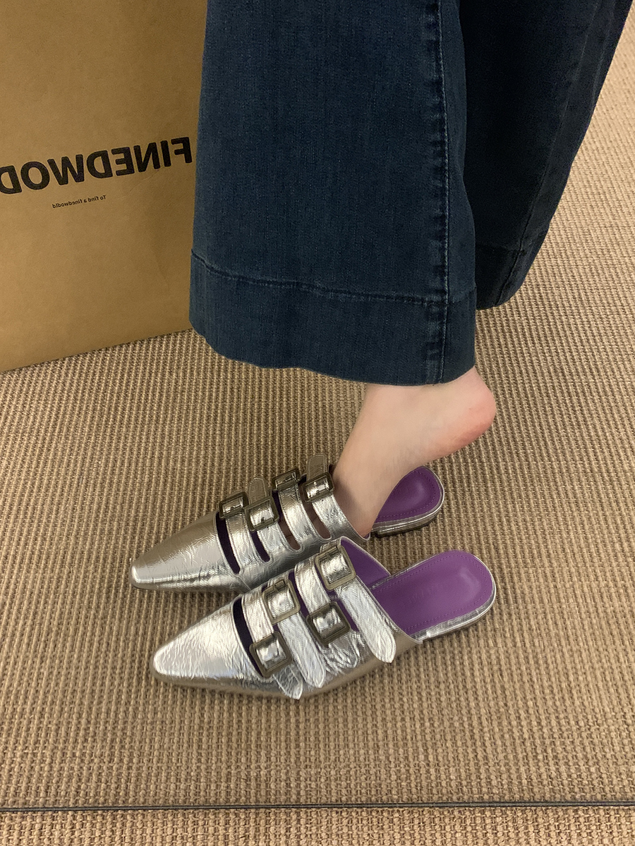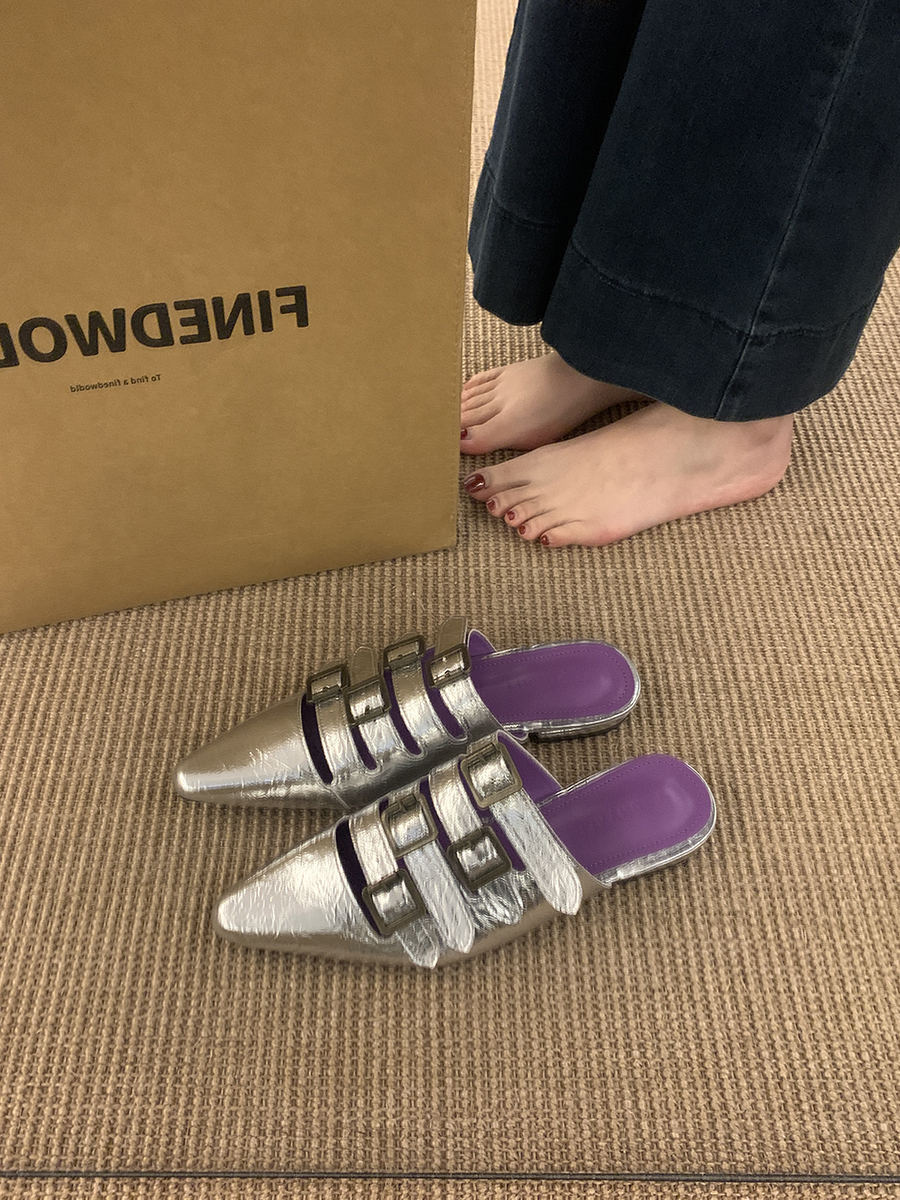 로우 힐 실버 하이 엔드 기질 Baotou 하프 드래그 신발 여성의 2025 봄 뉴 네트 레드 레트로 슈즈의 한국어 버전스토어 가기