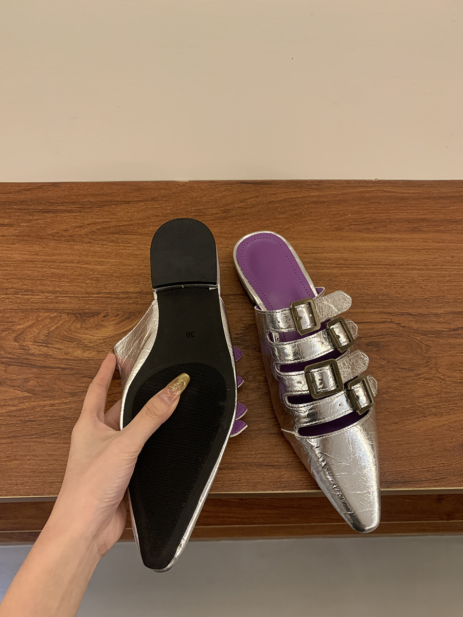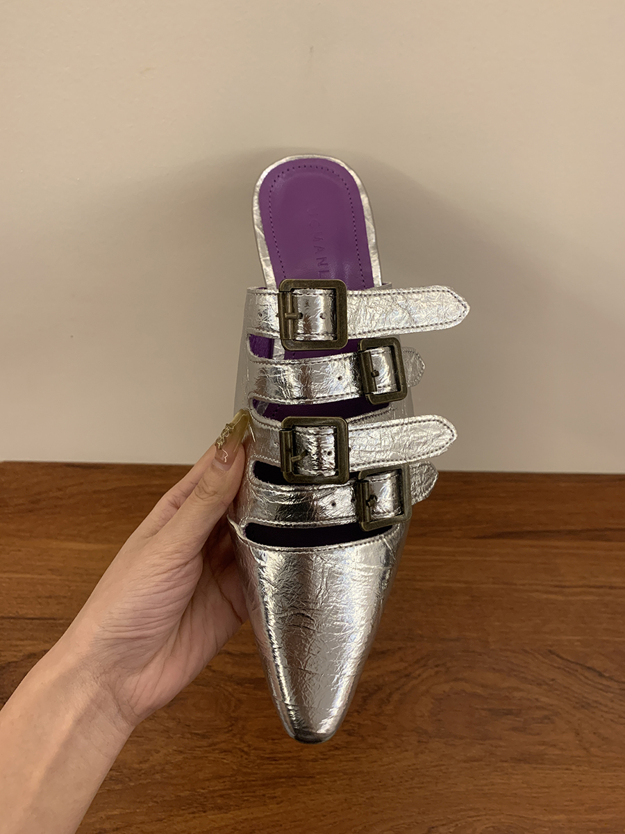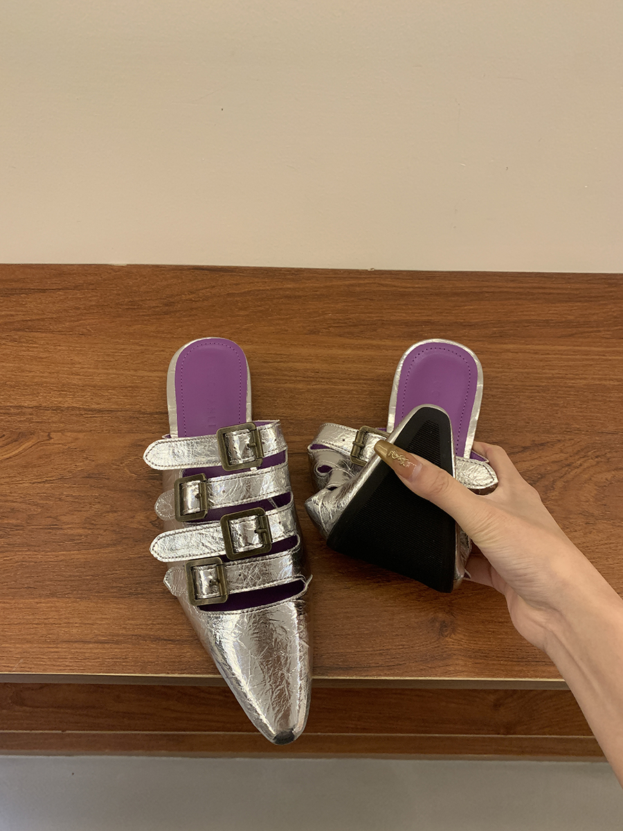 로우 힐 실버 하이 엔드 기질 Baotou 하프 드래그 신발 여성의 2025 봄 뉴 네트 레드 레트로 슈즈의 한국어 버전
