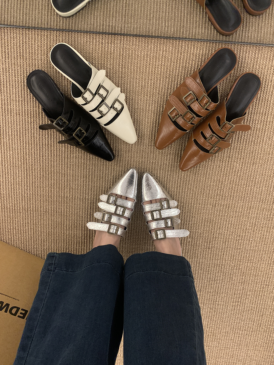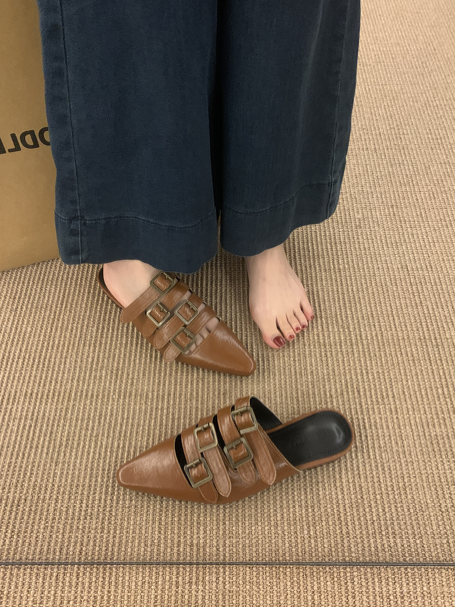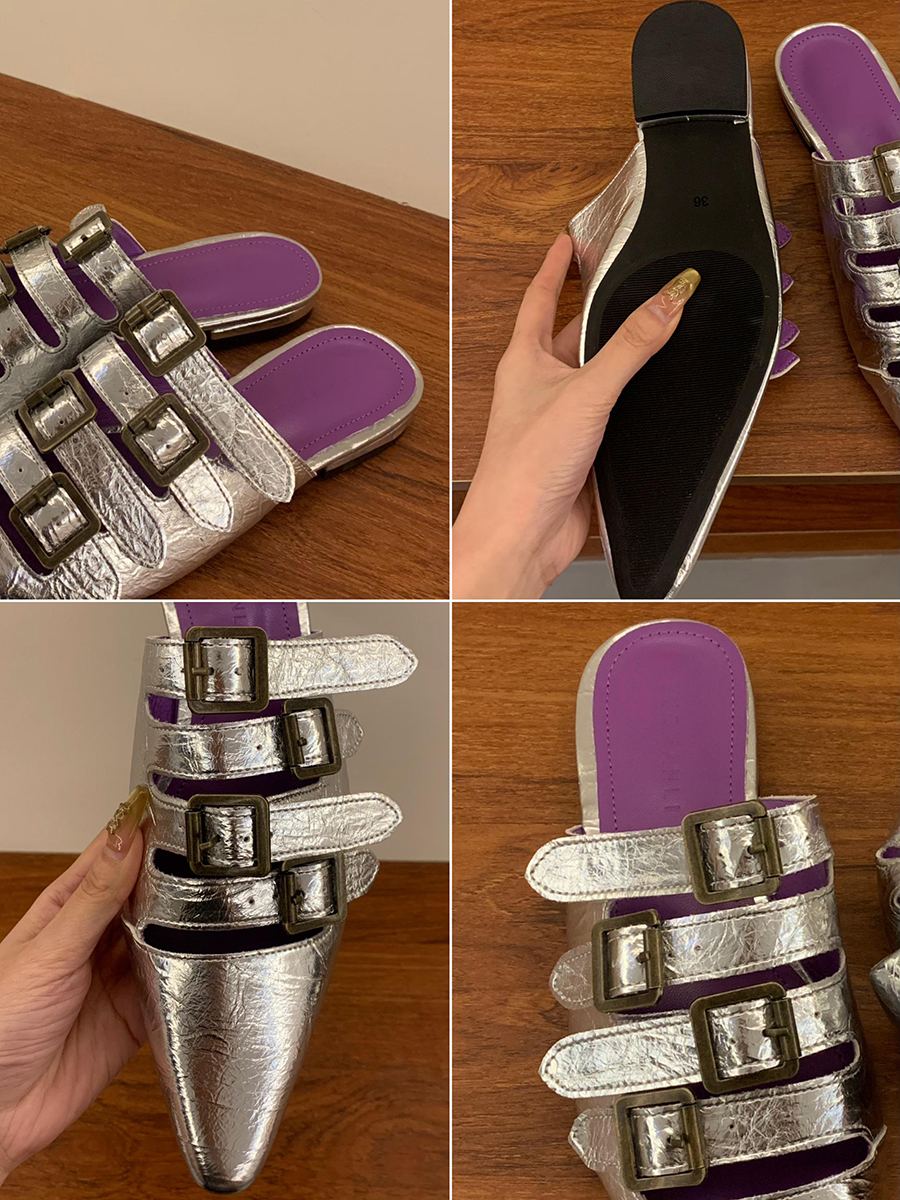 로우 힐 실버 하이 엔드 기질 Baotou 하프 드래그 신발 여성의 2025 봄 뉴 네트 레드 레트로 슈즈의 한국어 버전