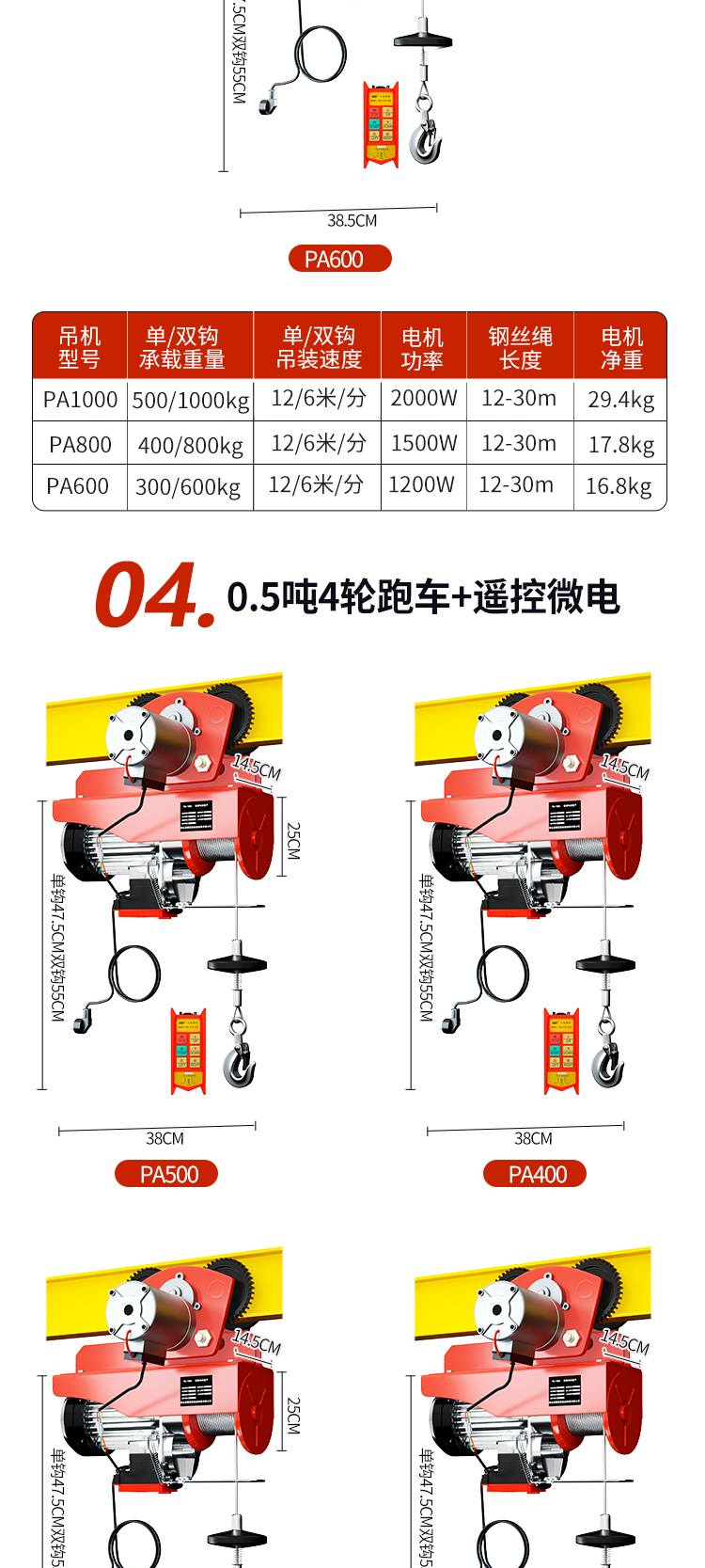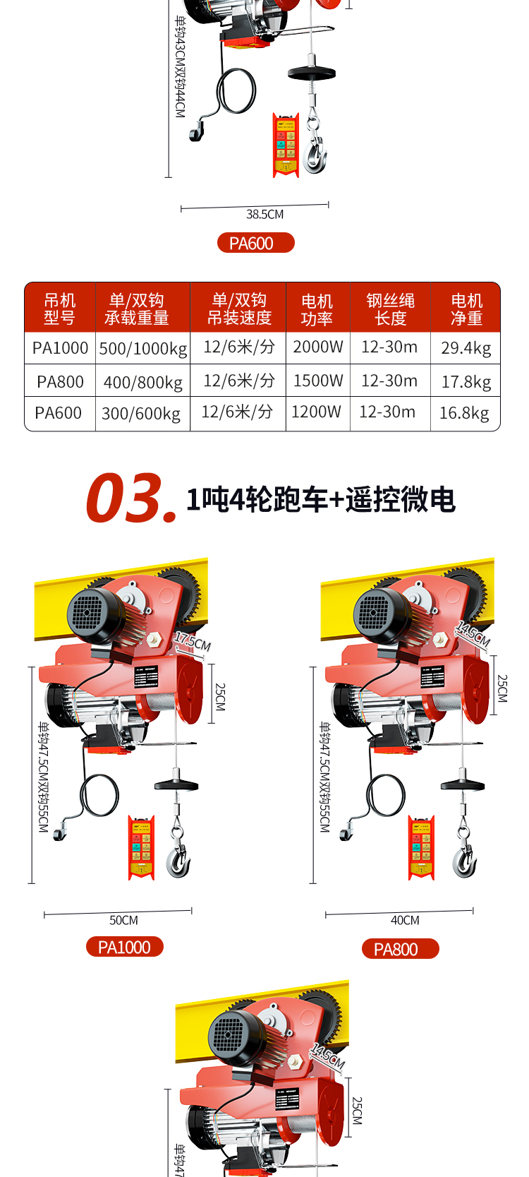 모바일 전기 호이스트 220v 무선 원격 제어 호이스트 0.5-1.5 톤 크레인 가정용 전기 호이스트 크레인스토어 가기