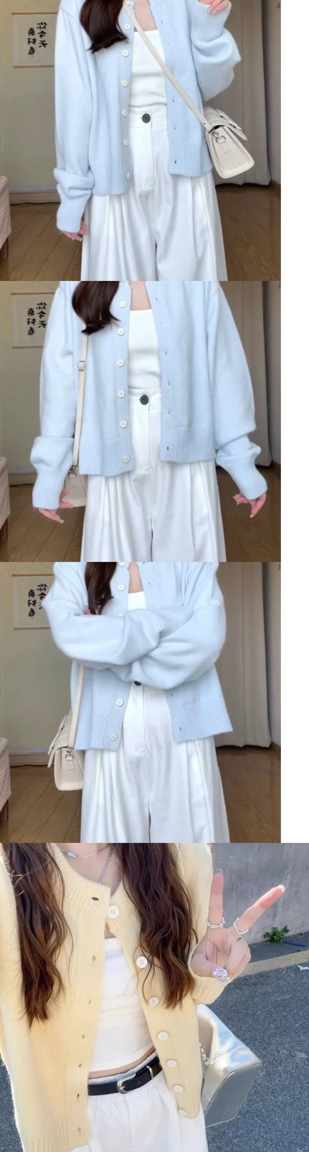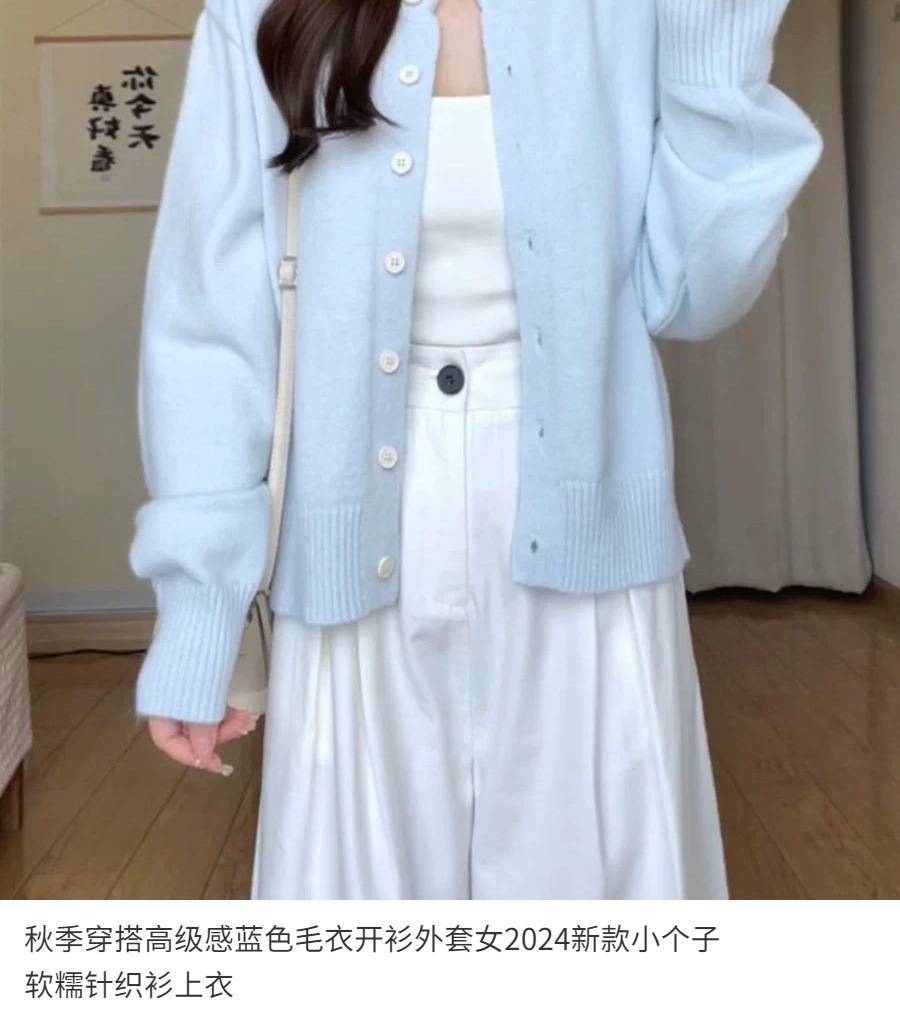 봄 착용 하이 엔드 블루 스웨터 카디건 코트 여성의 2025 새로운 소프트 왁스 스웨터 탑 작은 남성스토어 가기