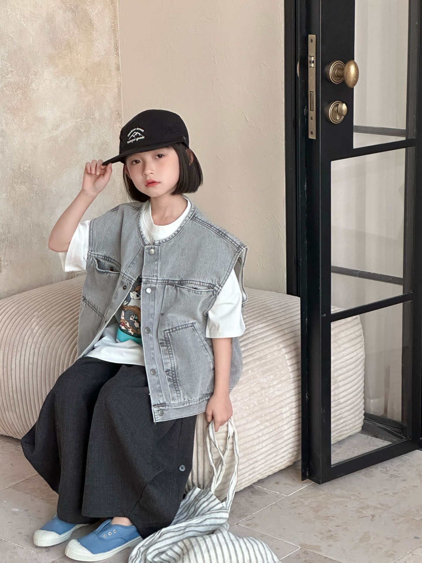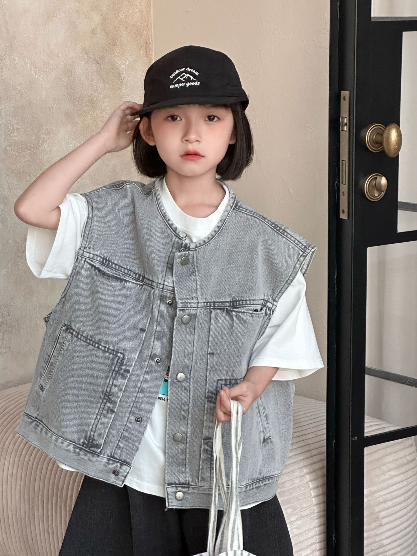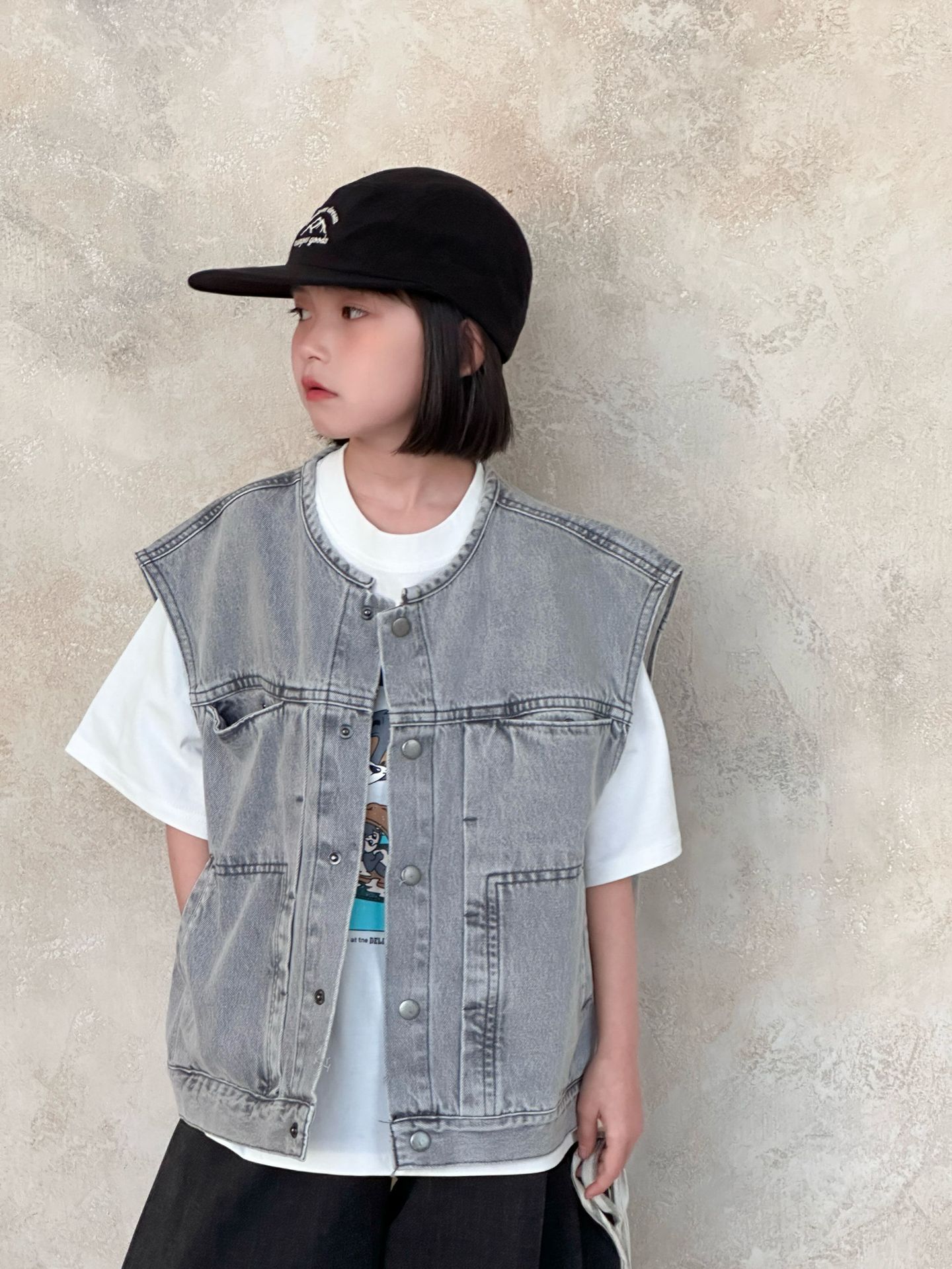 2026년 봄 신상 한국 스타일 아동 데님 조끼, 남아 여아용 패셔너블한 루즈핏 레이어드 조끼스토어 가기