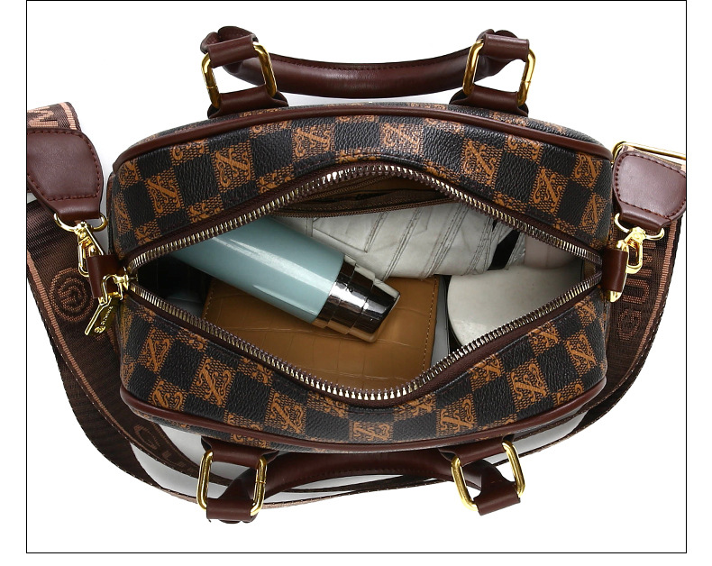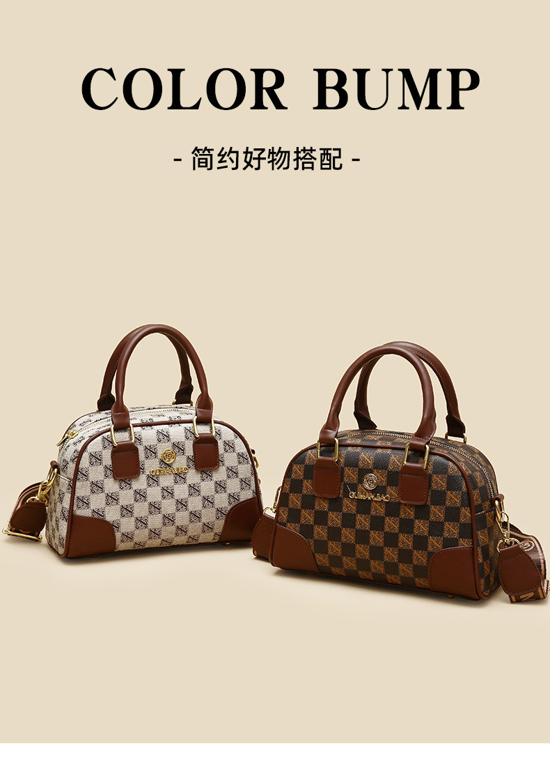 국경 간 새로운 보스턴 여성 가방 2025 체커 보드 유행 휴대용 어깨 크로스 바디 가방 엄마 통근 베개 가방