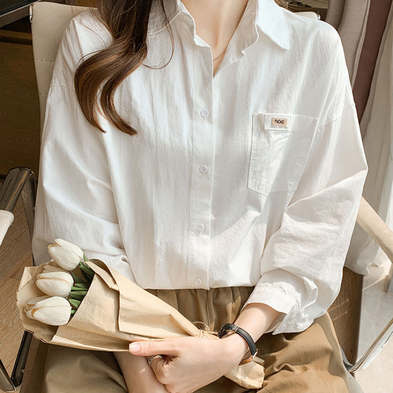 [순수 면 품질 버전] 화이트 셔츠 여성의 2025 년 봄과 가을 새로운 고급 외모 탑 외국 스타일 셔츠스토어 가기
