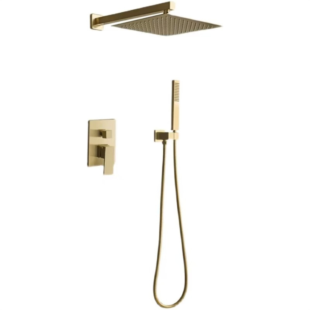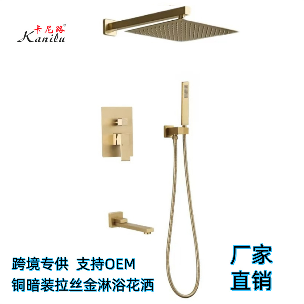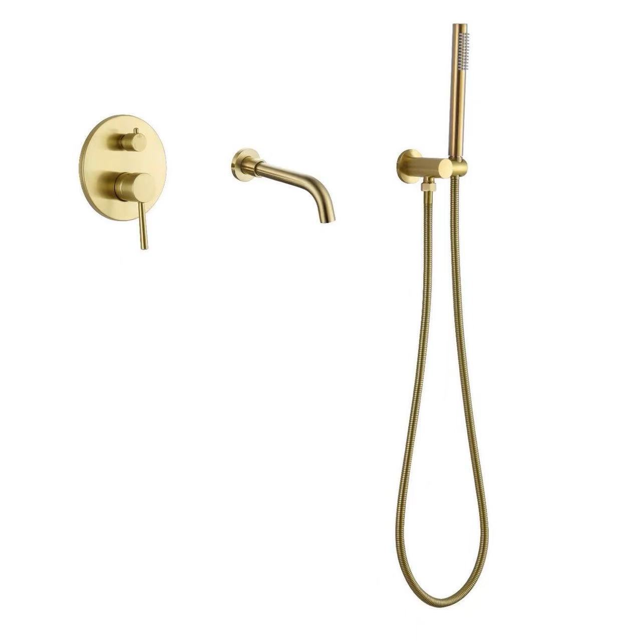 벽에 숨겨진 욕조 수도꼭지 제조업체에 내장 된 차가운 물과 뜨거운 물을 세트 브러시 드 골드 국경 구리 은폐 된 샤워 샤워스토어 가기