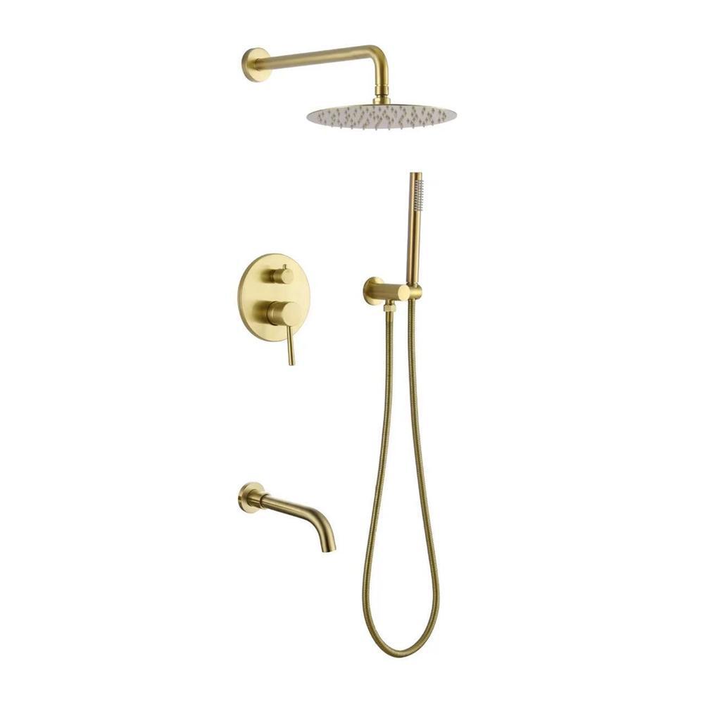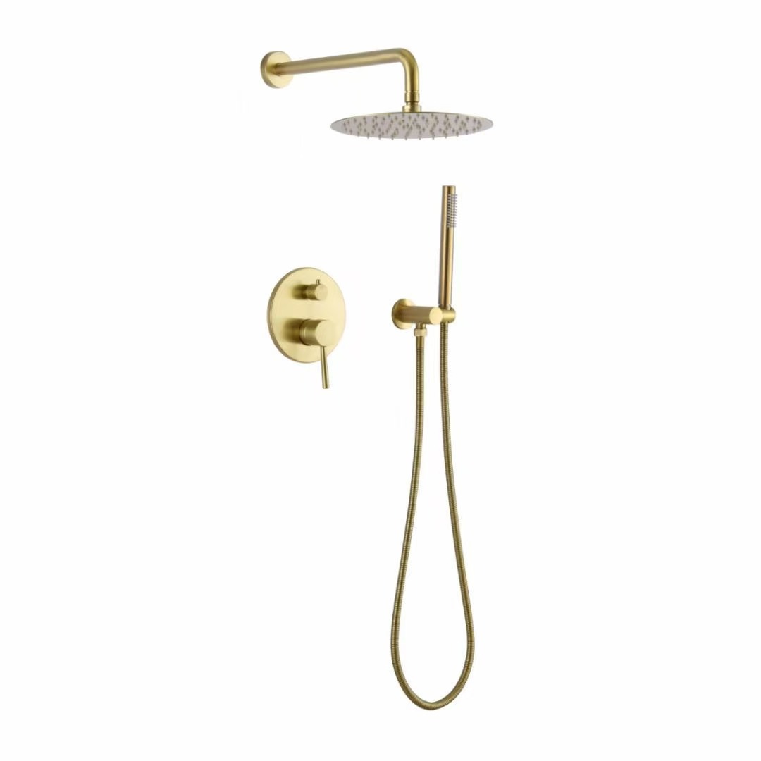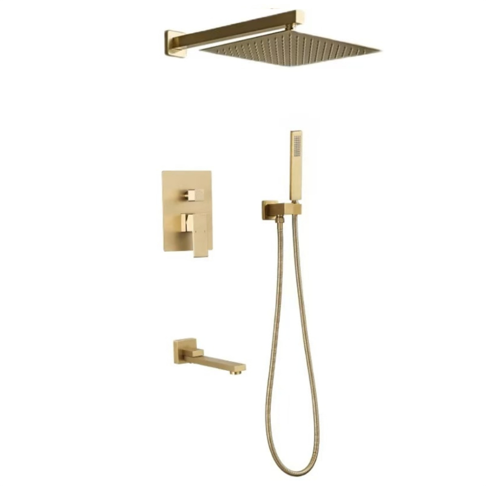 벽에 숨겨진 욕조 수도꼭지 제조업체에 내장 된 차가운 물과 뜨거운 물을 세트 브러시 드 골드 국경 구리 은폐 된 샤워 샤워스토어 가기