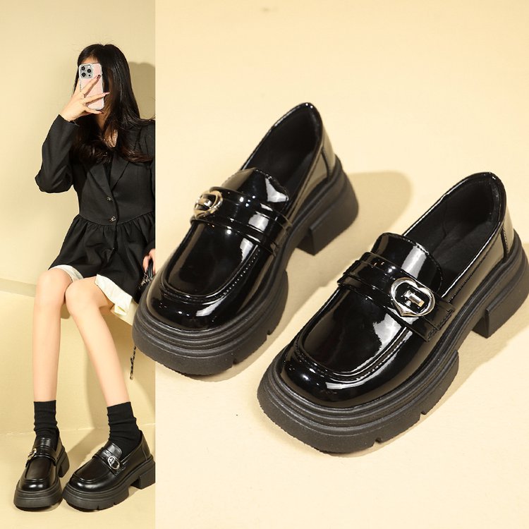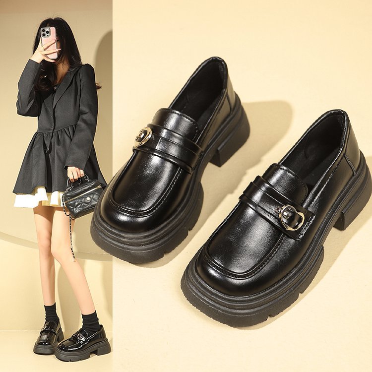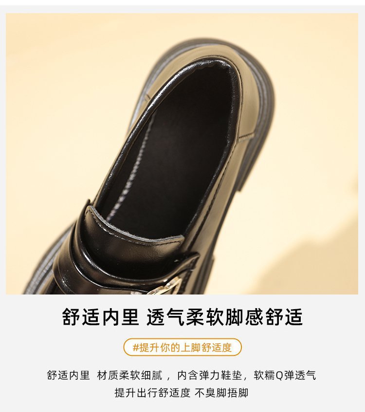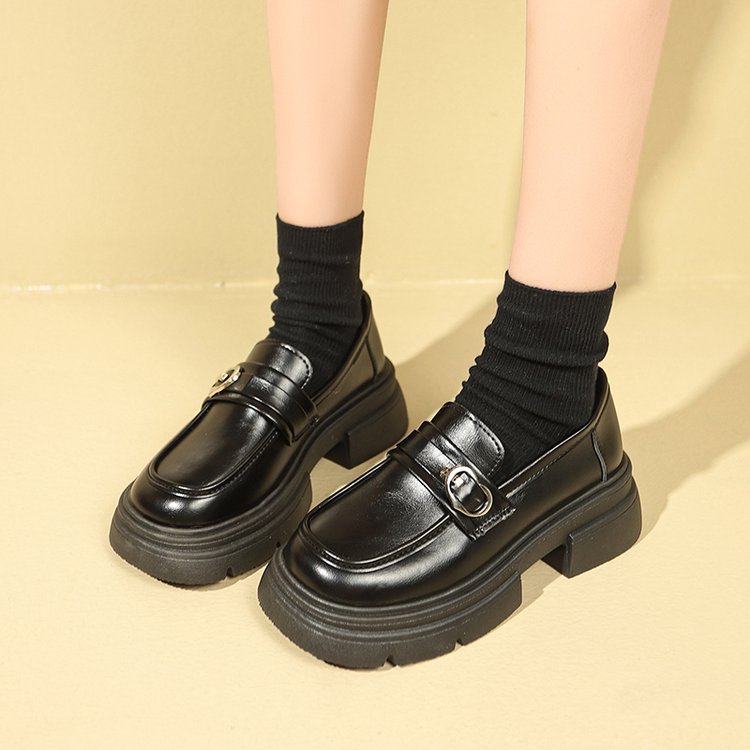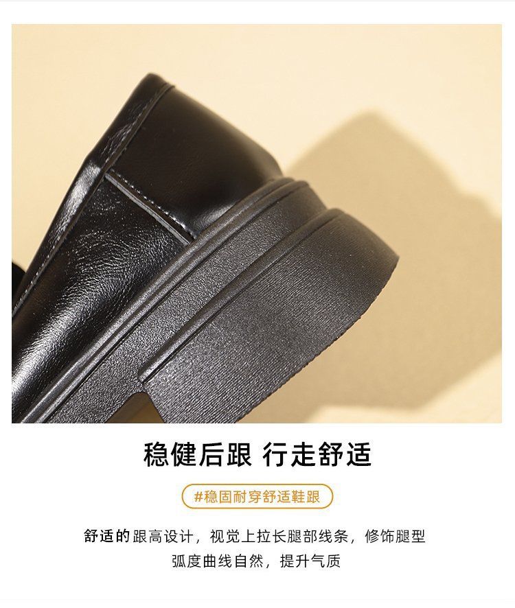 두꺼운 밑창 Chunky Heel 영국식 가죽 신발 여성의 2025 년 새 봄과 가을 슬립 온 여성 신발 싱글 레이어 신발 블랙 올 매치 로퍼