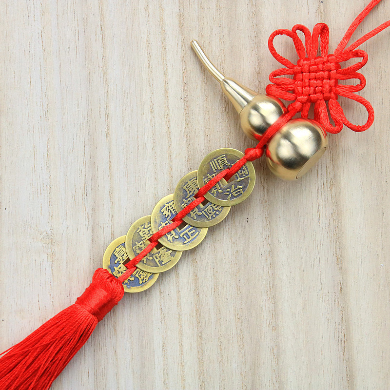중공 구리 조롱박 진짜 구리 다섯 황제 돈 펜던트 도매 고급 황동 골동품 동전 자동차 펜던트 자동차 인테리어 펜던트스토어 가기