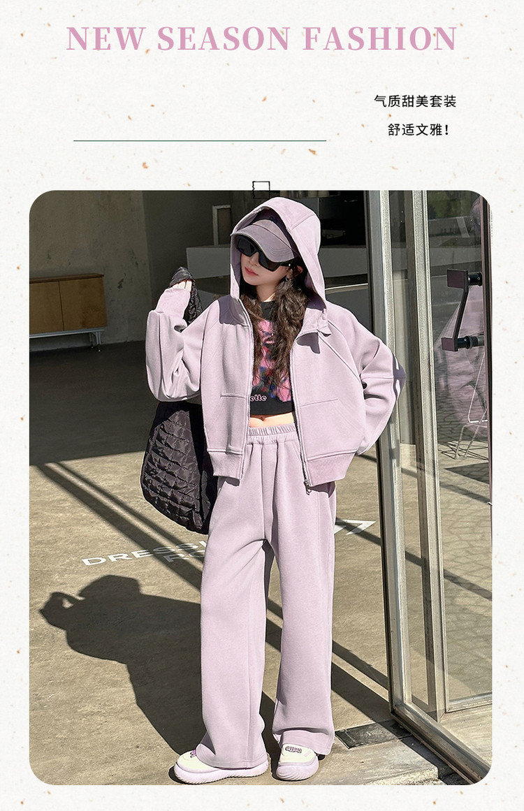소녀 후드 스프링 원피스 세트 2025 새로운 서양식 카디건 재킷 캐주얼 바지 큰 어린이 스포츠 투피스 세트스토어 가기