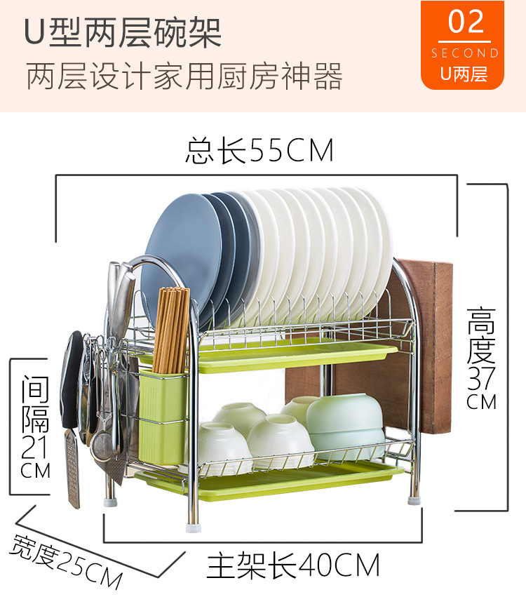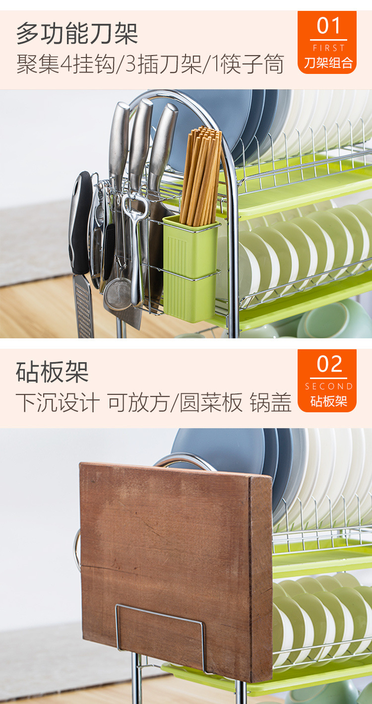 • 2단 U자형 + 도마걸이 + 젓가락꽂이 + 칼꽂이 + 녹색 접시