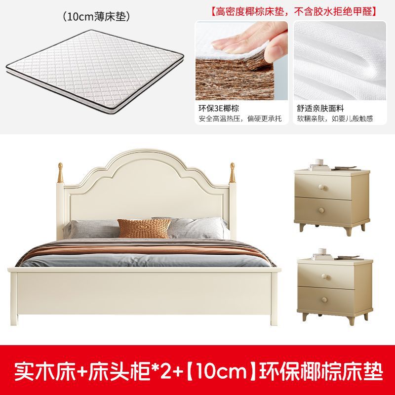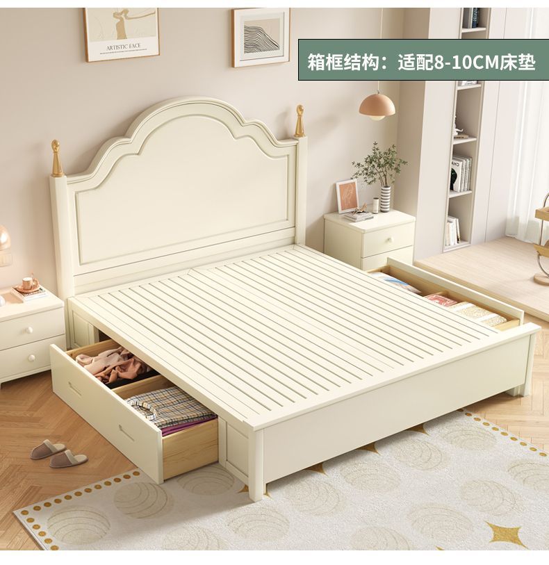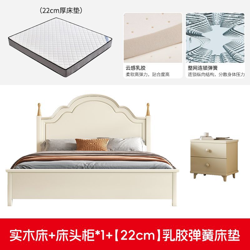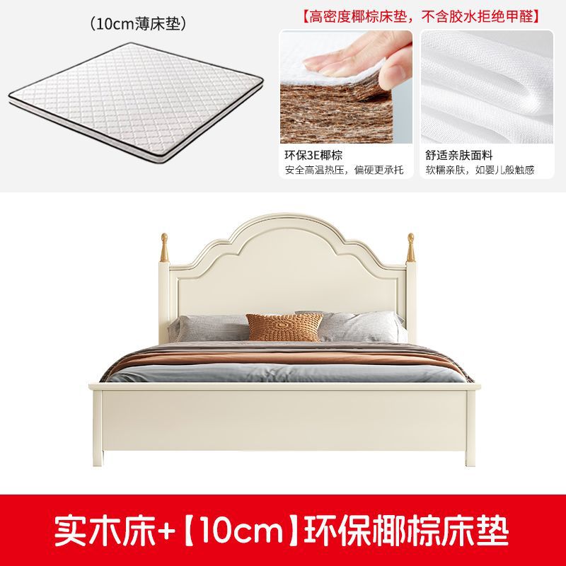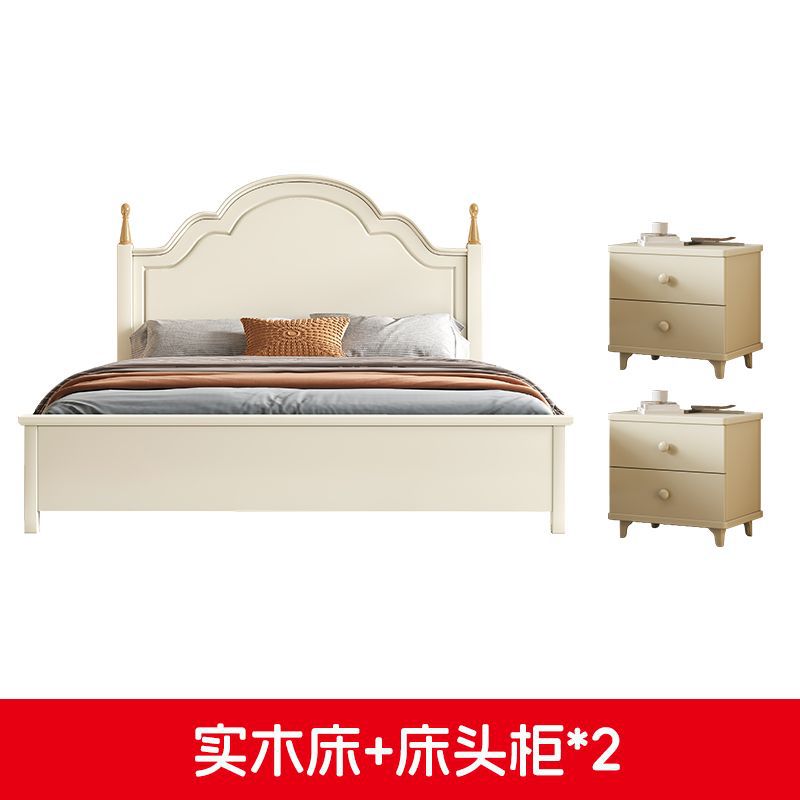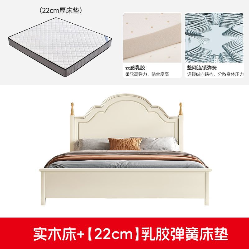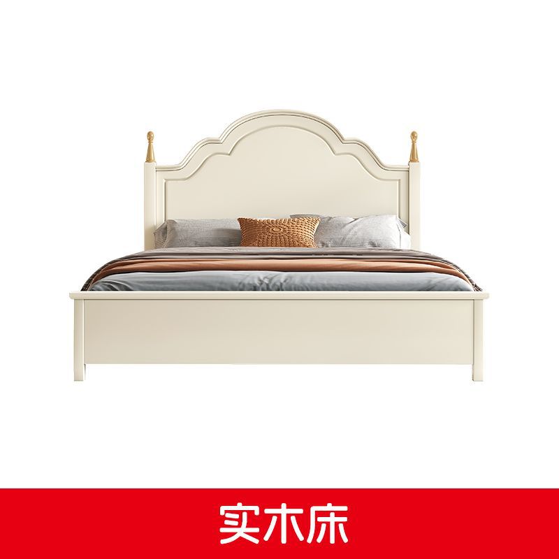 미국 스타일의 단단한 나무 침대 홈 마스터 침실 더블 침대 크림 스타일 화이트 현대 간단한 임대 룸 작은 아파트 공주 침대