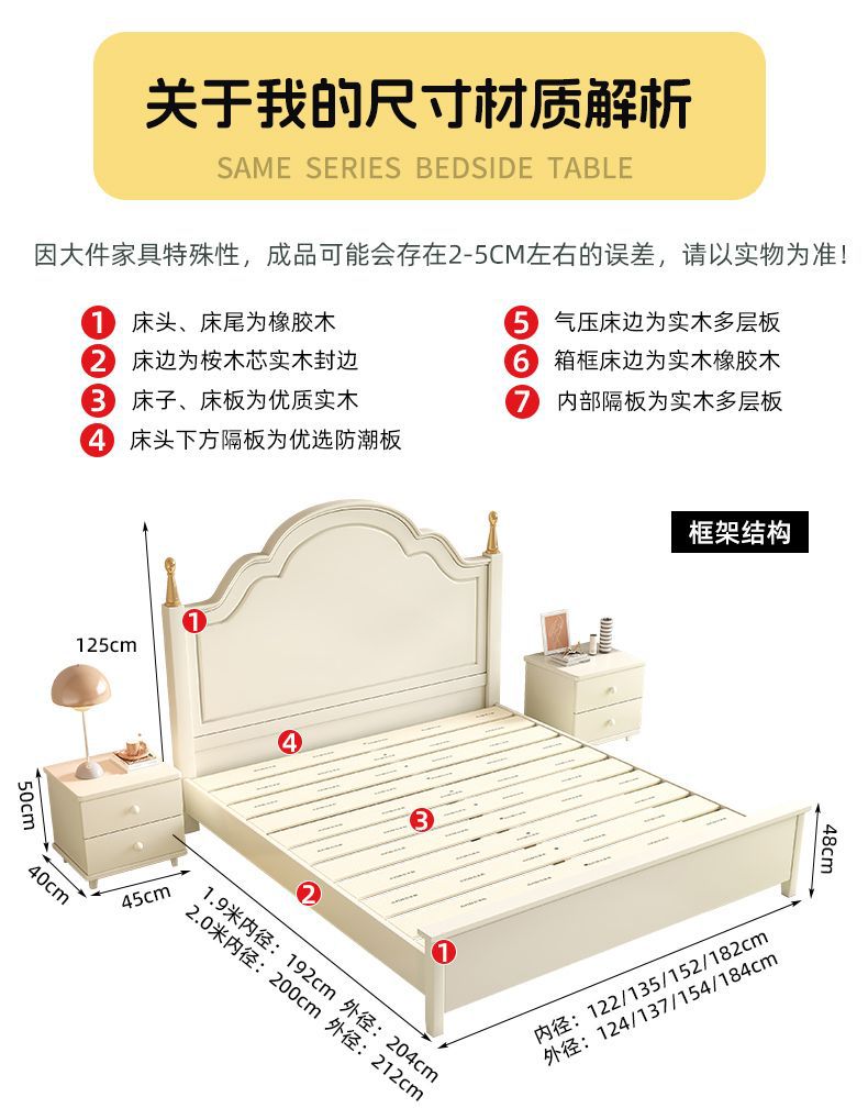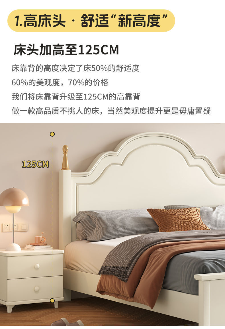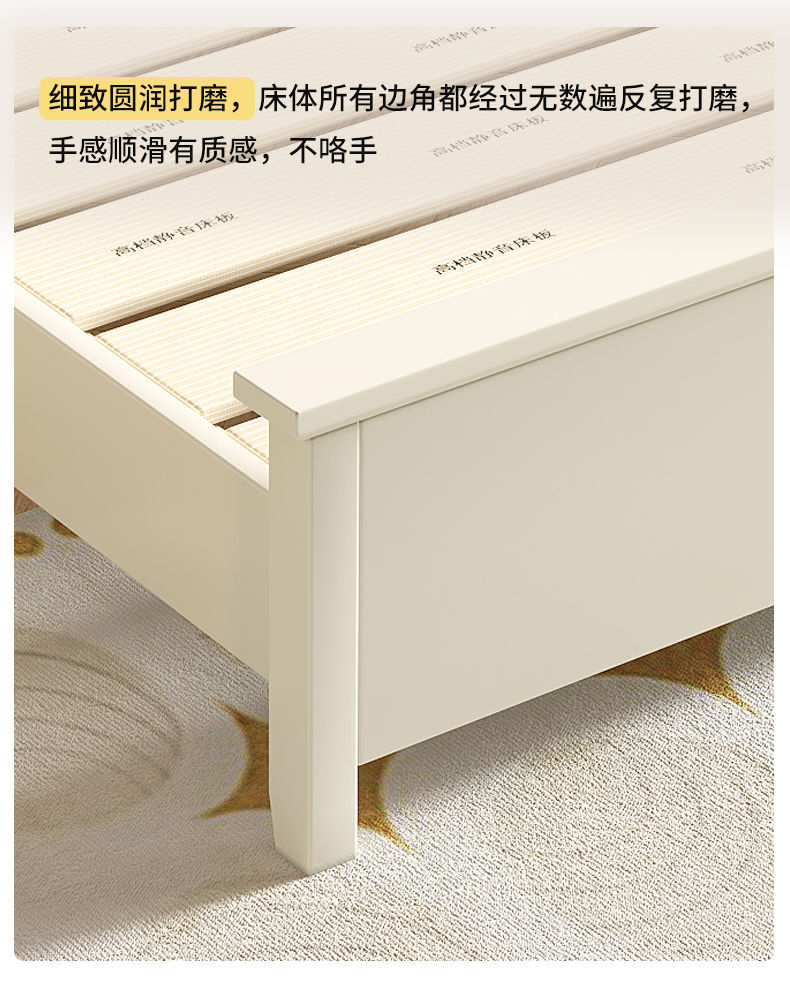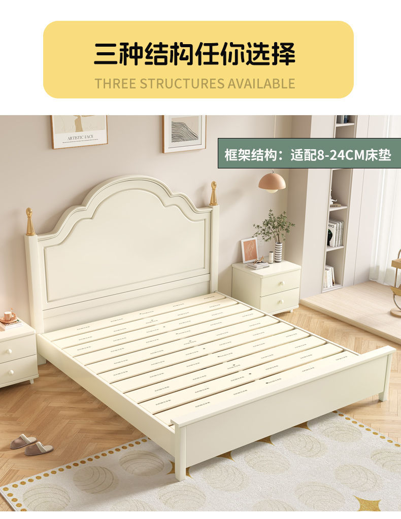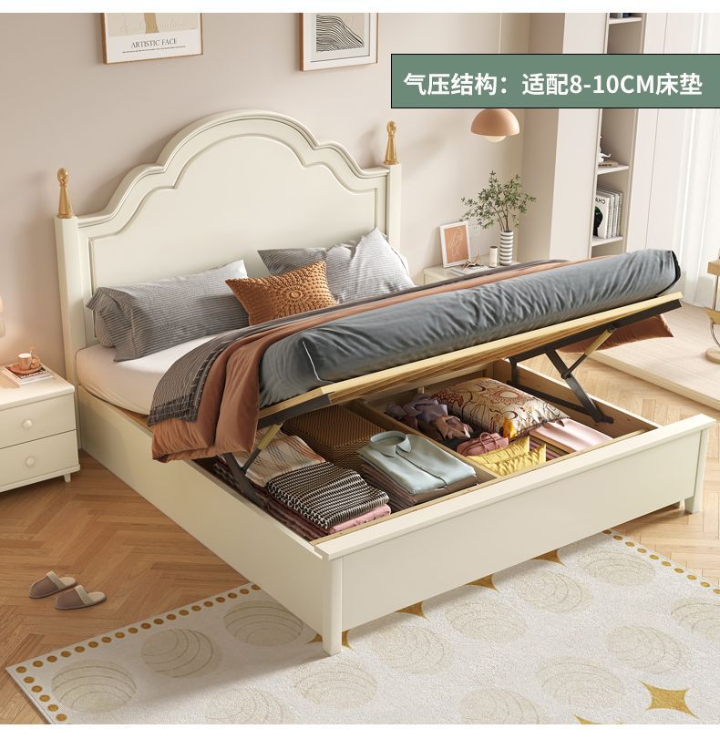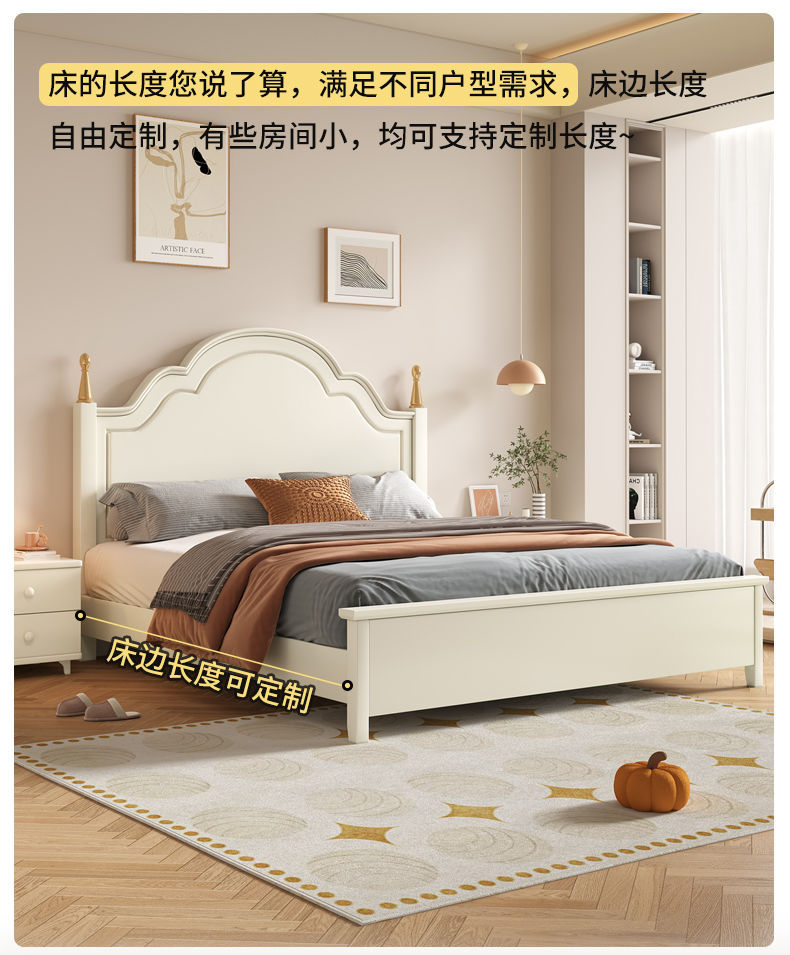 미국 스타일의 단단한 나무 침대 홈 마스터 침실 더블 침대 크림 스타일 화이트 현대 간단한 임대 룸 작은 아파트 공주 침대