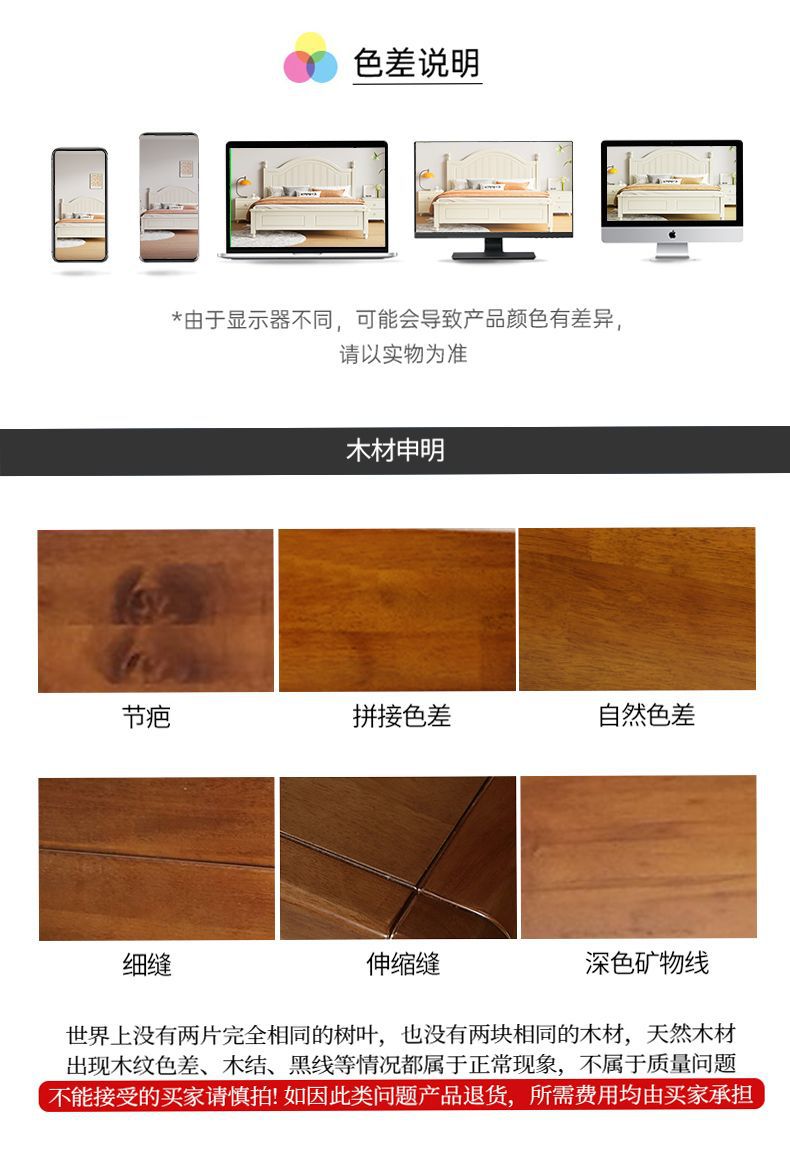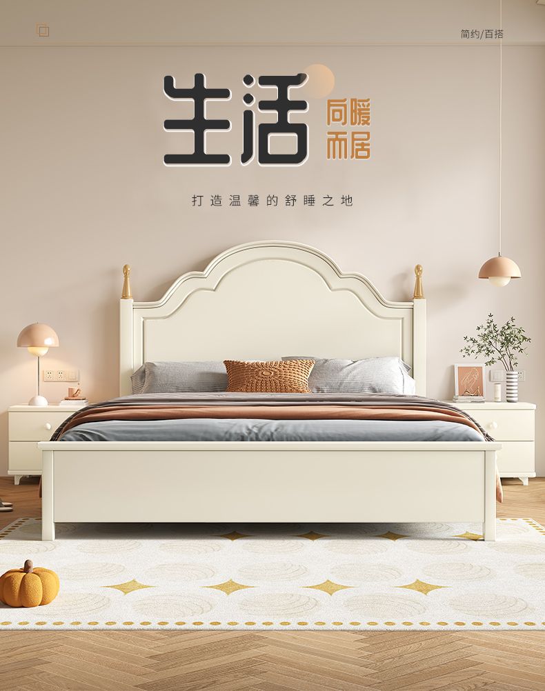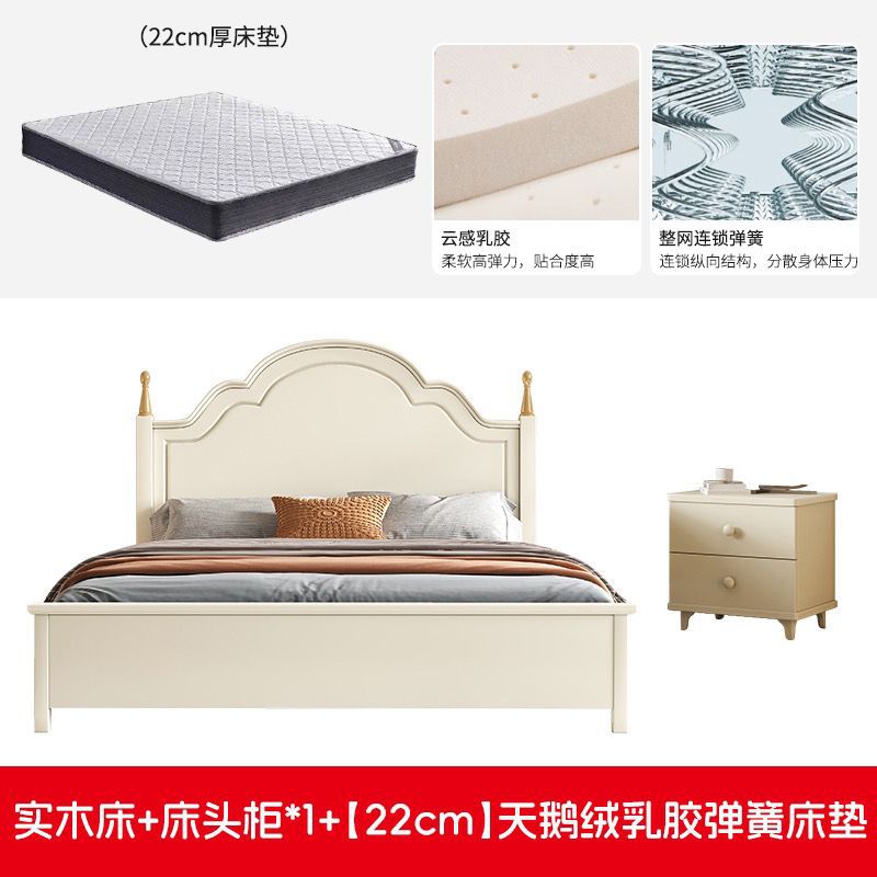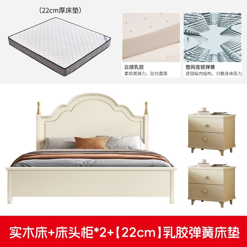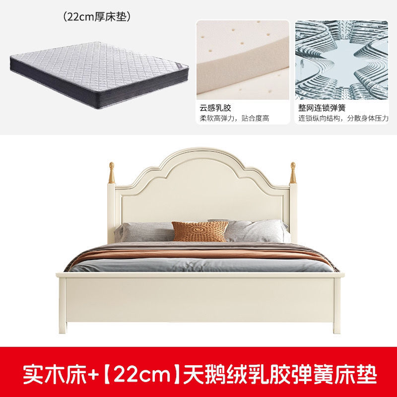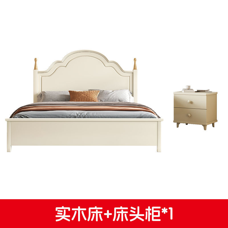 미국 스타일의 단단한 나무 침대 홈 마스터 침실 더블 침대 크림 스타일 화이트 현대 간단한 임대 룸 작은 아파트 공주 침대스토어 가기
