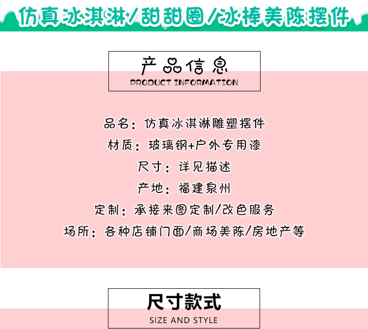 시뮬레이션 아이스크림 조각 야외 인터넷 레드 아이스크림 도넛 유리 섬유 강화 플라스틱 쇼핑몰 우유 차 가게 Meichen 장식품