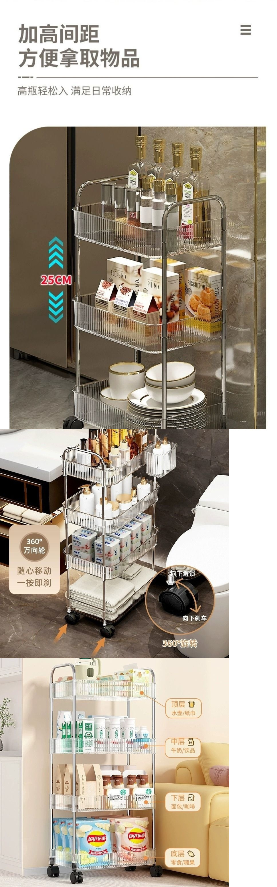 • [업그레이드 및 두꺼워짐] 4단 투명 트롤리
