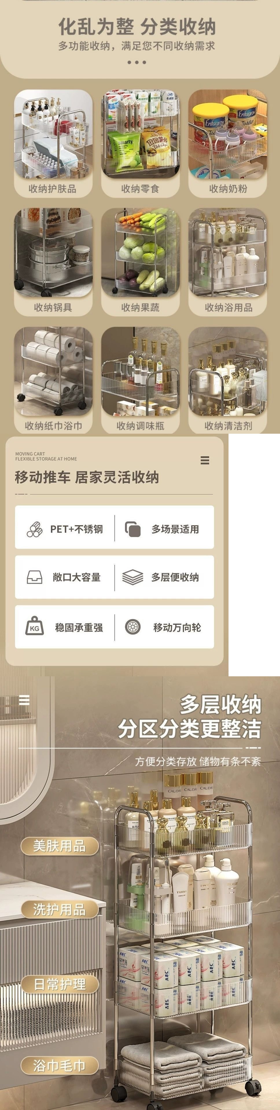 • [업그레이드 및 두꺼워짐] 3단 투명 트롤리
