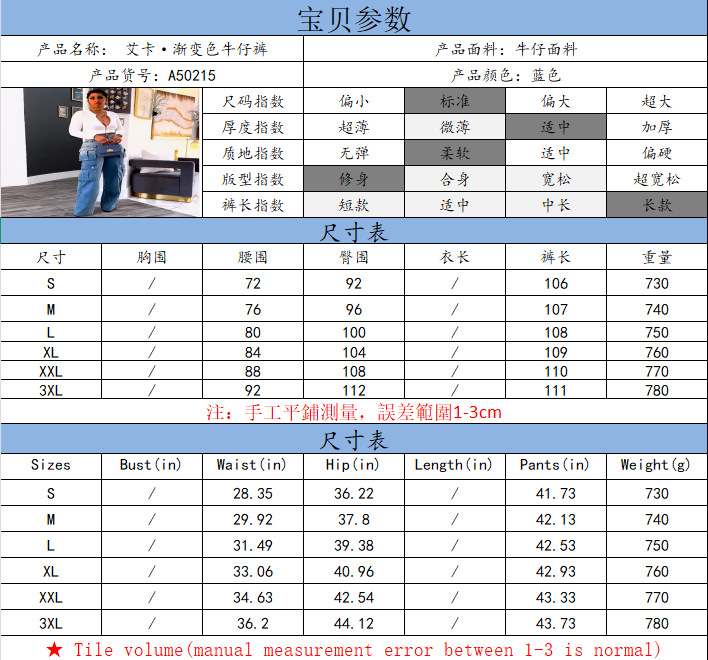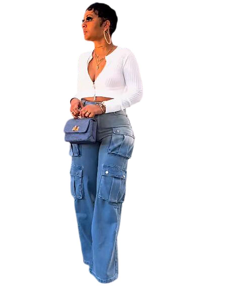 유럽과 미국 여성의 타이 염색 청바지 아마존 크로스 보더 여성 패션 하이 웨이스트 멀티 포켓 그라디언트 와이드 레그 팬츠스토어 가기