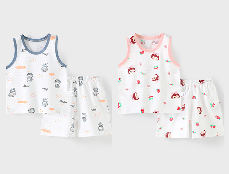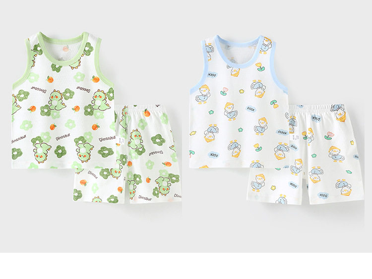 아기 잠옷 여름 남자와 아기를위한 얇은 속옷 세트 순면 뼈없는 어린이 조끼 반바지 여자를위한 옷을 쪼개다스토어 가기