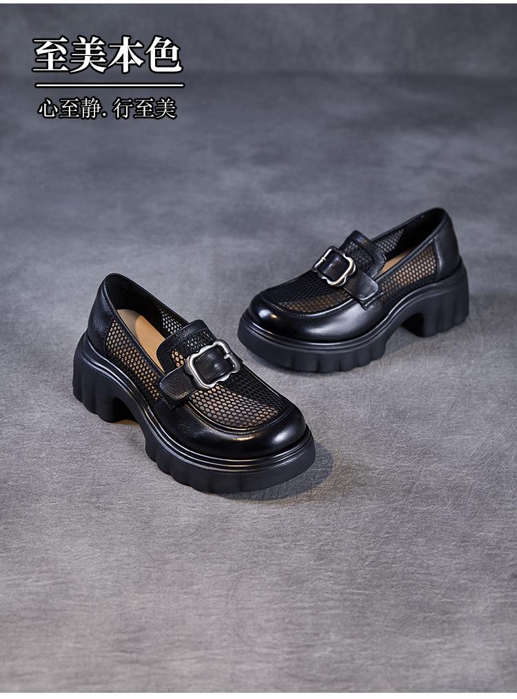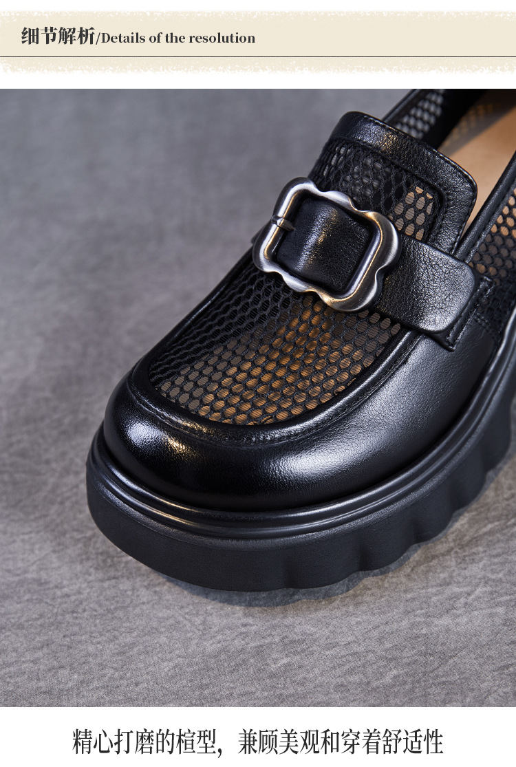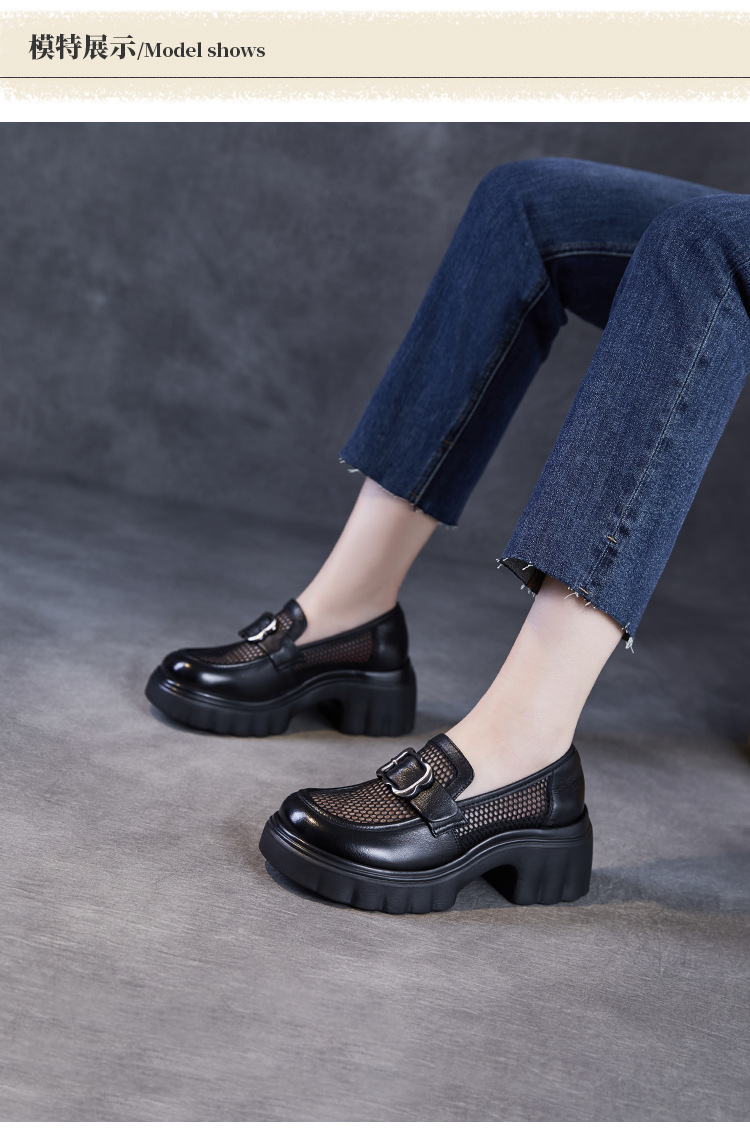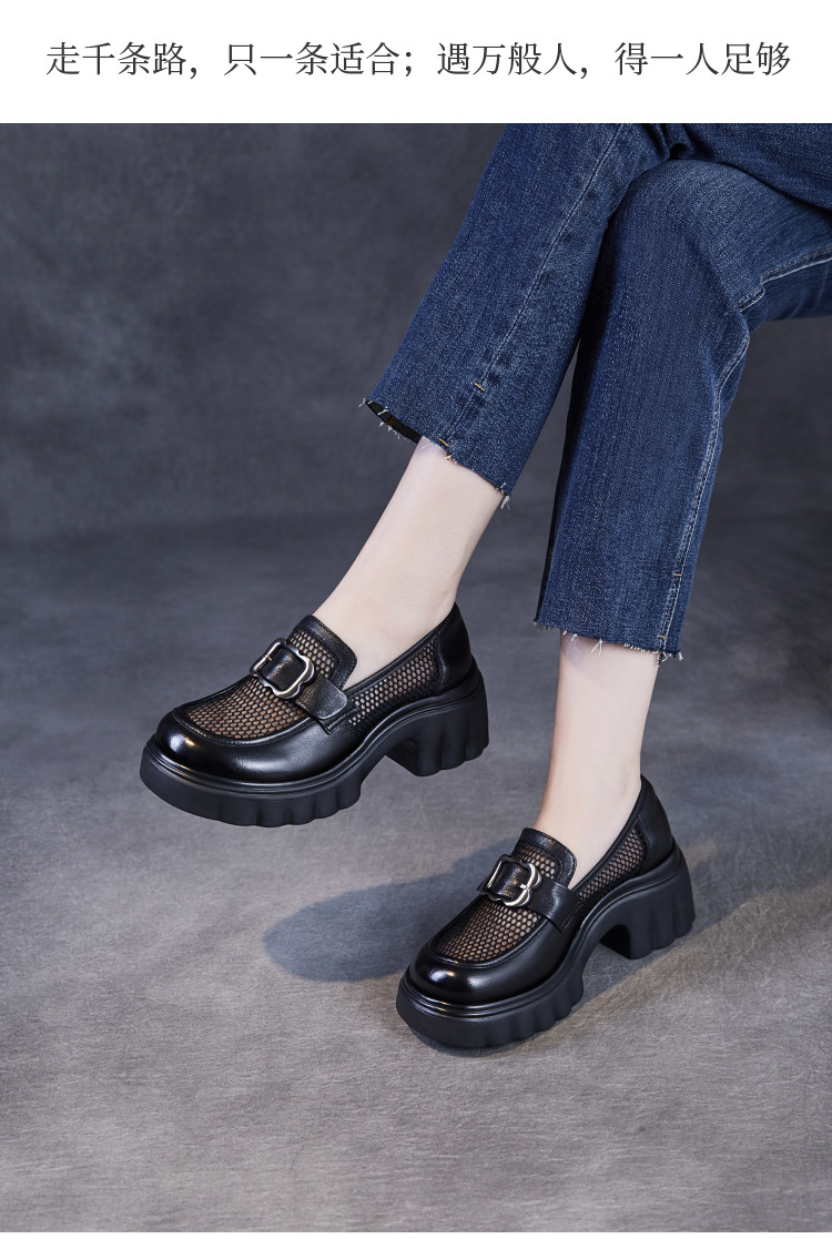 메쉬 플랫폼 로퍼 여성 2025 년 봄과 여름 새로운 정품 가죽 통기성 메쉬 신발 슬립 온 싱글 슈즈스토어 가기