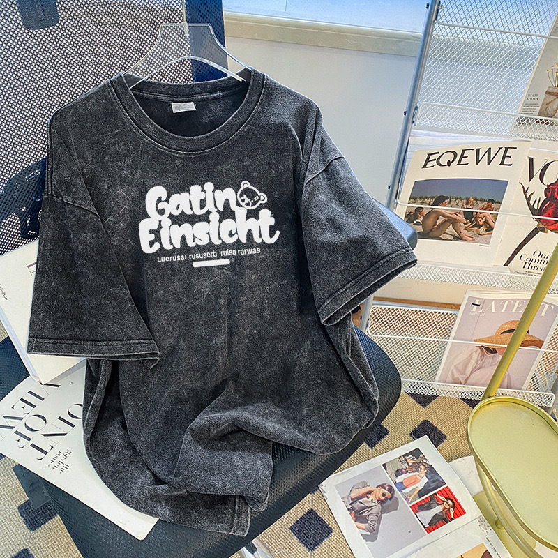세탁 된 올드 코튼 반팔 티셔츠 여성 여름 특대 미국 레트로 하이 스트리트 유럽과 미국 패션 브랜드 데님 반소매 티셔츠스토어 가기