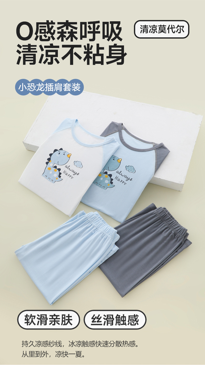 어린이 홈웨어 A급 봄여름 170g 란징 모달 긴팔 잠옷 세트 남아용 시원한 에어컨복