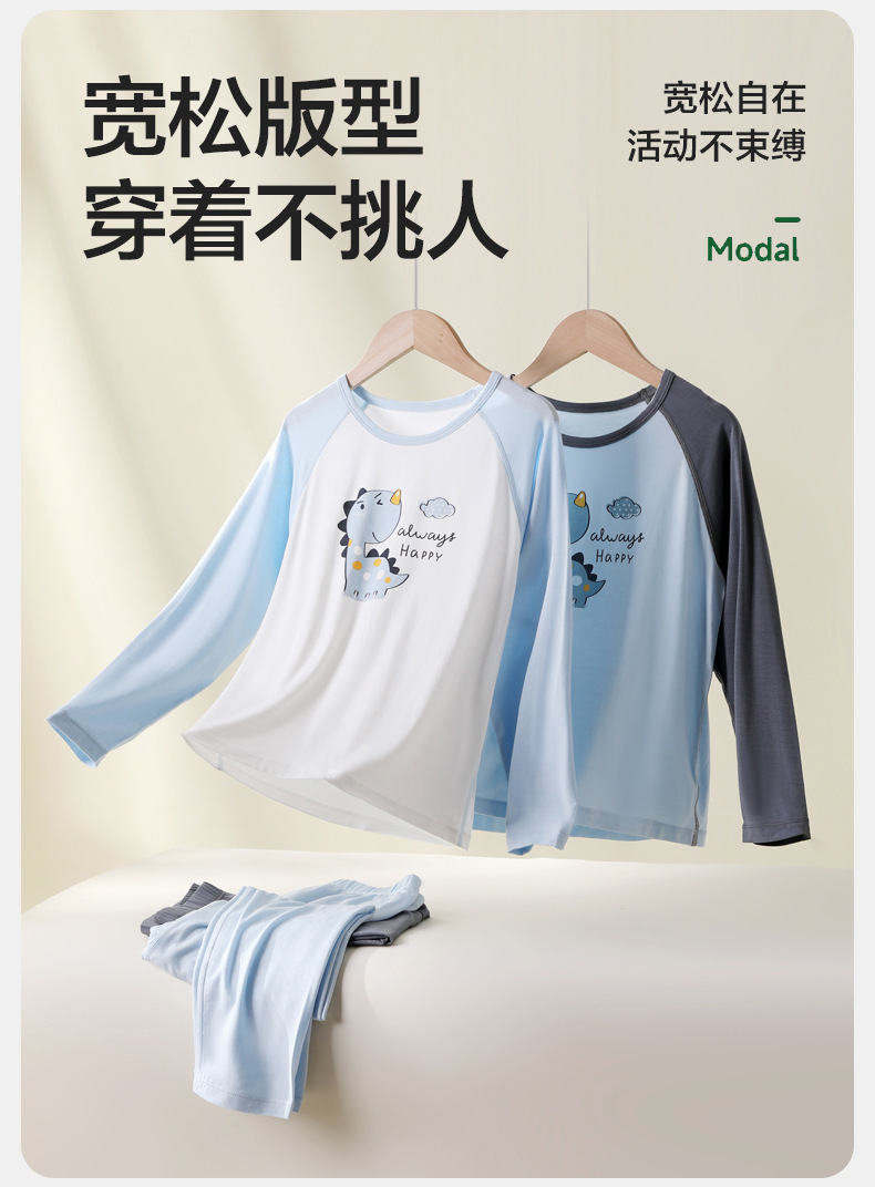 어린이 홈웨어 A급 봄여름 170g 란징 모달 긴팔 잠옷 세트 남아용 시원한 에어컨복스토어 가기