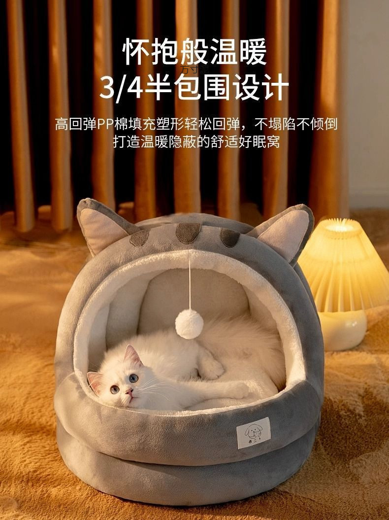 고양이 둥지 사계절 유니버설 겨울 집 이동식 및 세척 가능한 폐쇄 그물 빨간 고양이 집 봄 고양이 둥지 겨울 고양이 매트 도매스토어 가기
