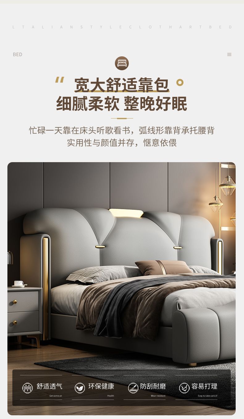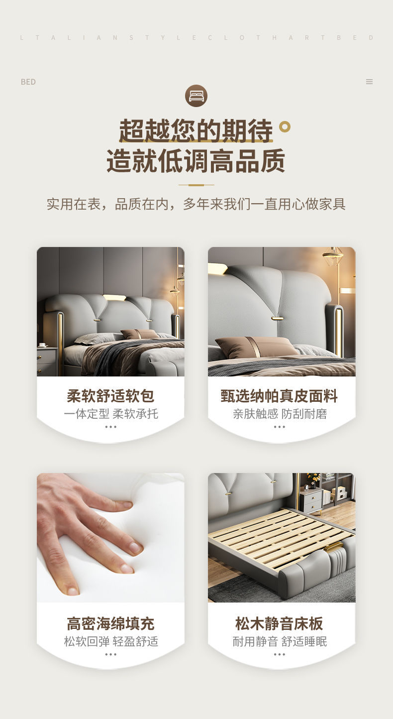 • 이탈리안 가죽 침대 + 캐비닛 1개 + 클라우드 소프트 엘라스틱 매트리스