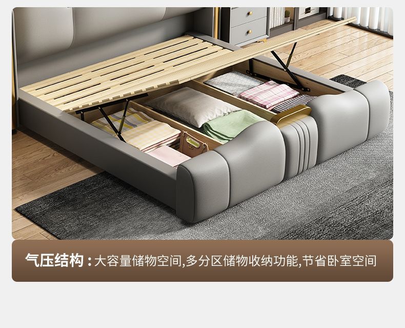 이탈리아 스타일의 가죽 침대 빛 고급 현대 간단한 더블 침대 마스터 침실 인터넷-유명한 큰 침대 다기능 저장 침대 소프트 가방 웨딩 침대