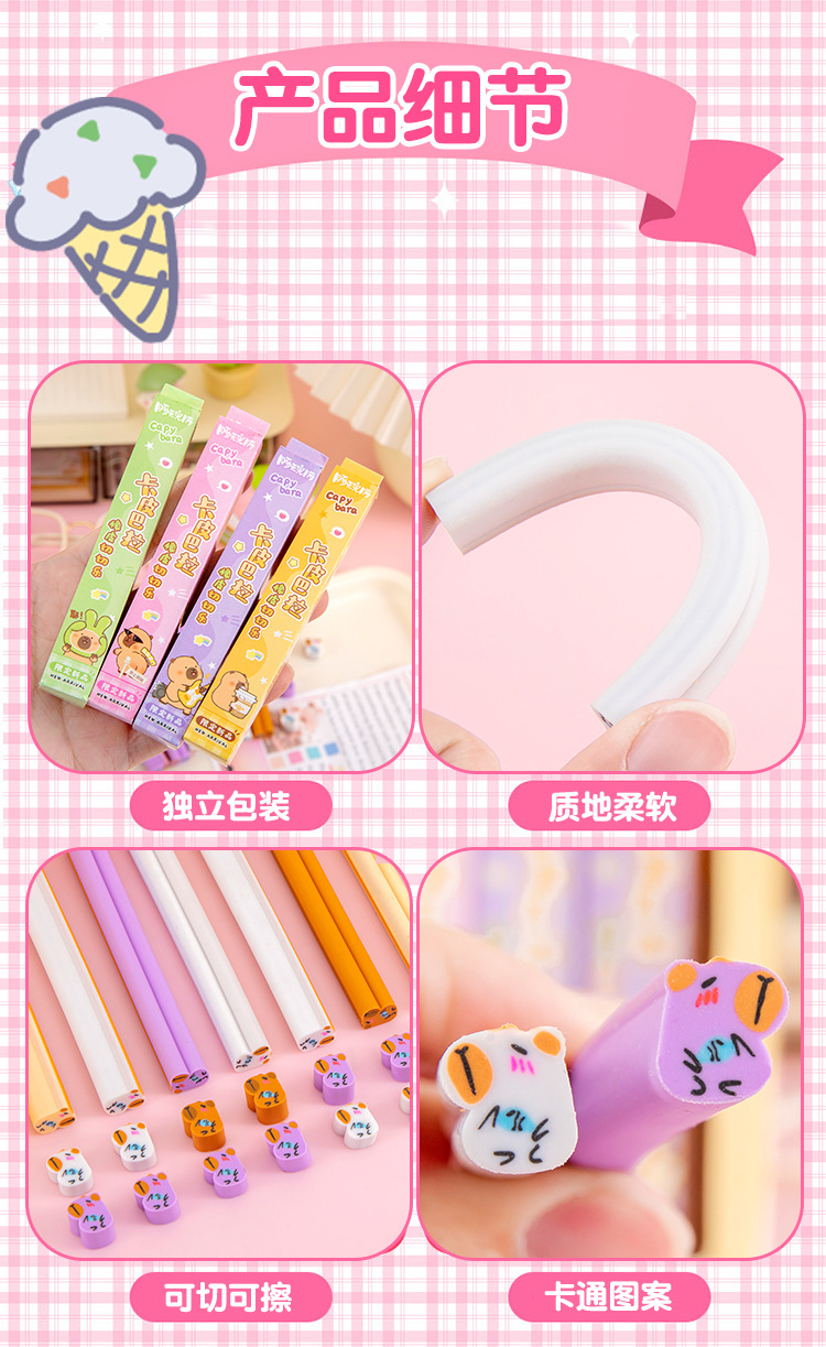 Kappi Barra Chichele 지우개 초등학교 학생 만화 지우개 귀여운 연필 지우개 문구 유치원 선물