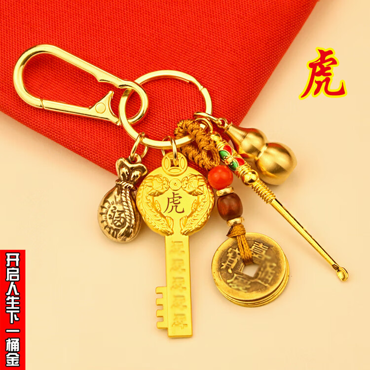 • 합금 호랑이 다섯 가지 축복 금 열쇠 + 행운의 돈 가방 + 조롱박