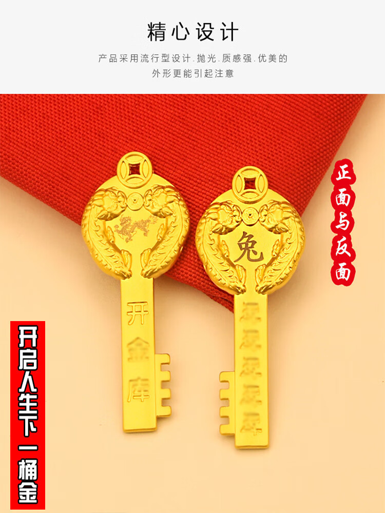 • 합금 닭 다섯 가지 축복 금 열쇠 + 행운의 돈 가방 + 조롱박
