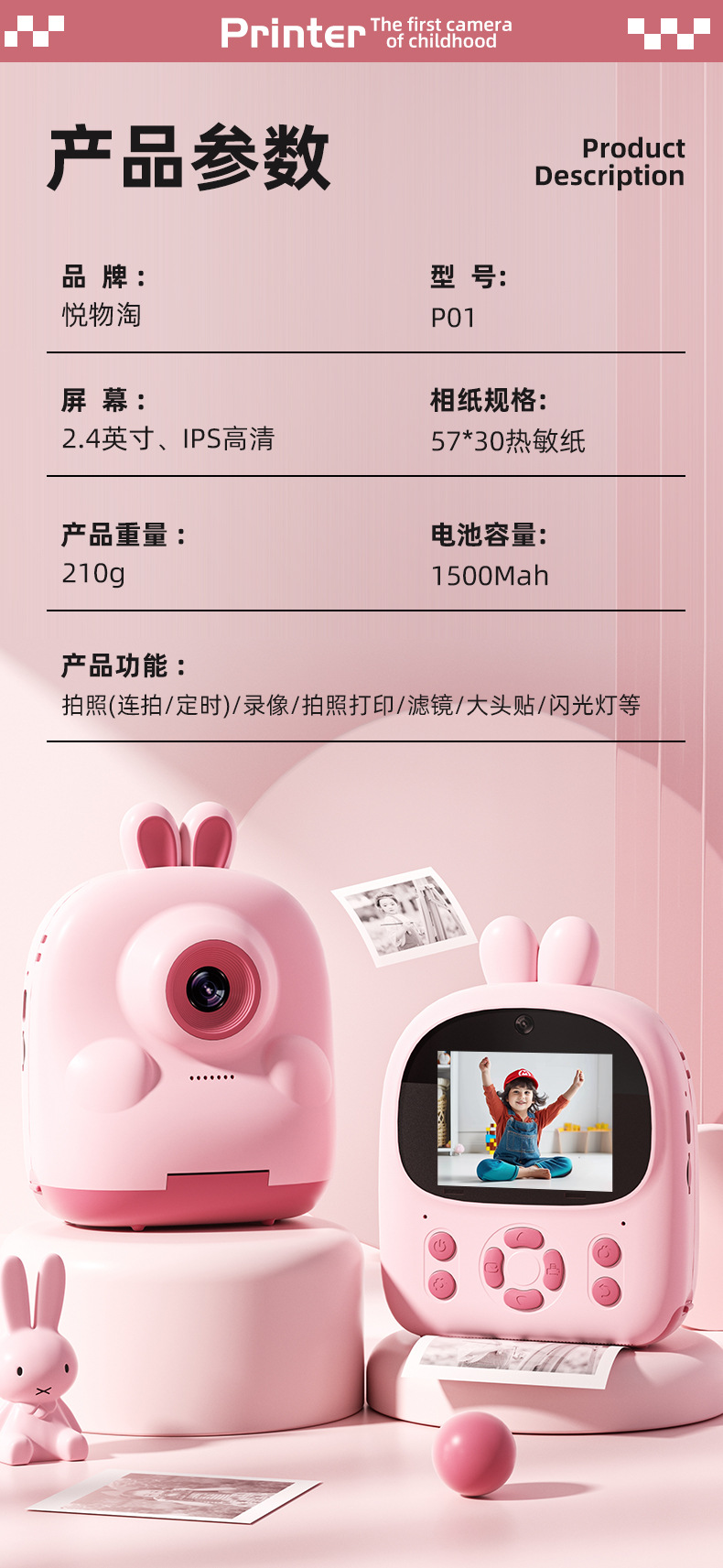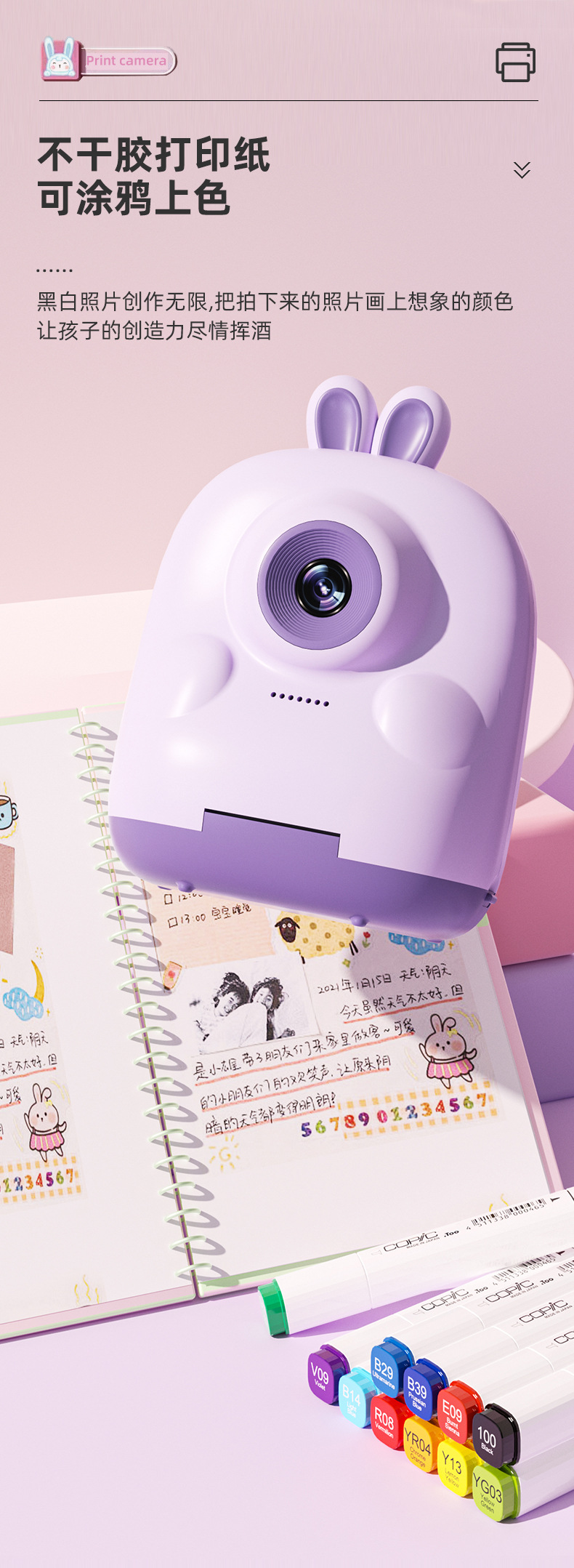 국경 간 새로운 어린이 카메라 Poroflops 인쇄 사진 장난감 사진 휴대용 HD 비디오 디지털 카메라