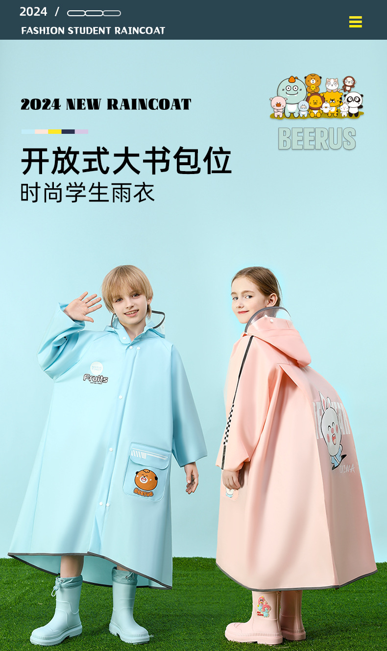 소년 소녀를위한 어린이 비옷 지퍼 어린이 중학교 및 초등학생 특수 롱 스쿨백 전신 판초스토어 가기