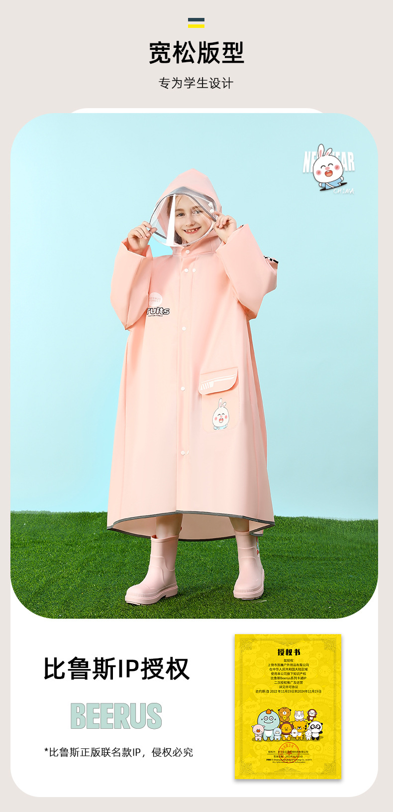 소년 소녀를위한 어린이 비옷 지퍼 어린이 중학교 및 초등학생 특수 롱 스쿨백 전신 판초