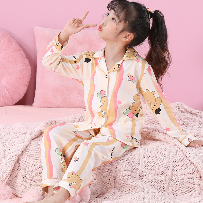 한국 스타일 소녀 잠옷 공주 봄과 가을 긴 소매 어린이 착용 아기 큰 소년 소녀 만화 집 옷 에어컨 옷스토어 가기