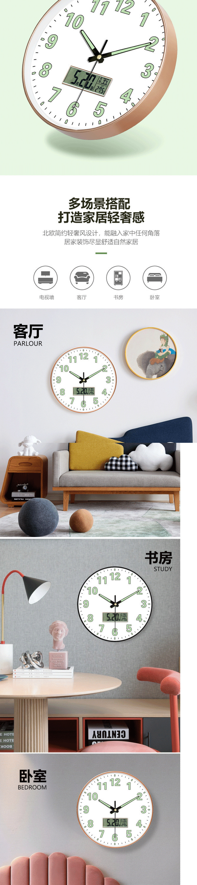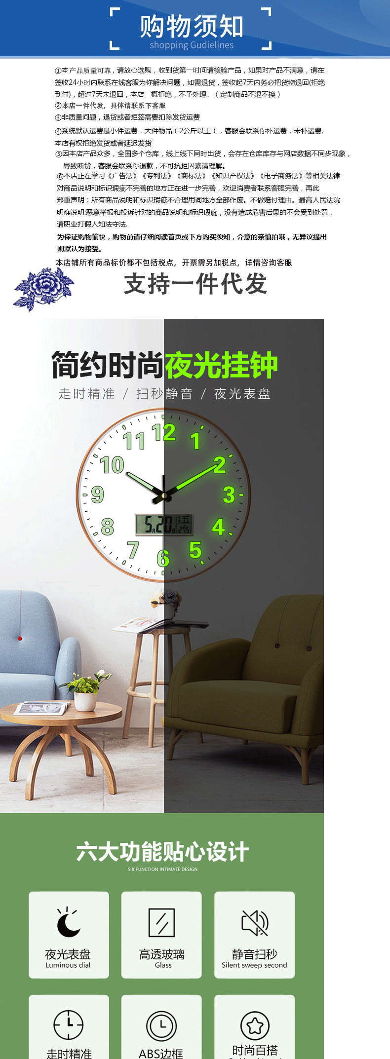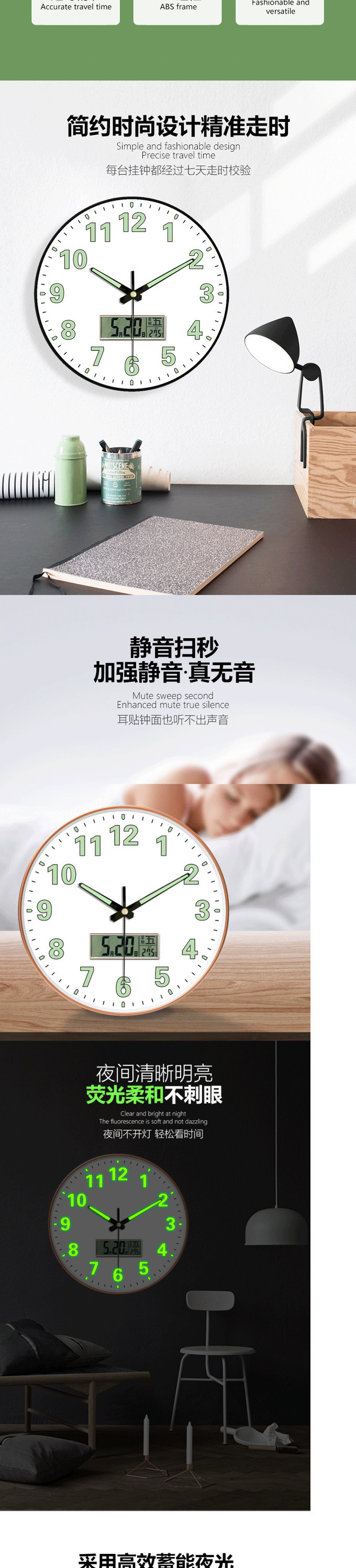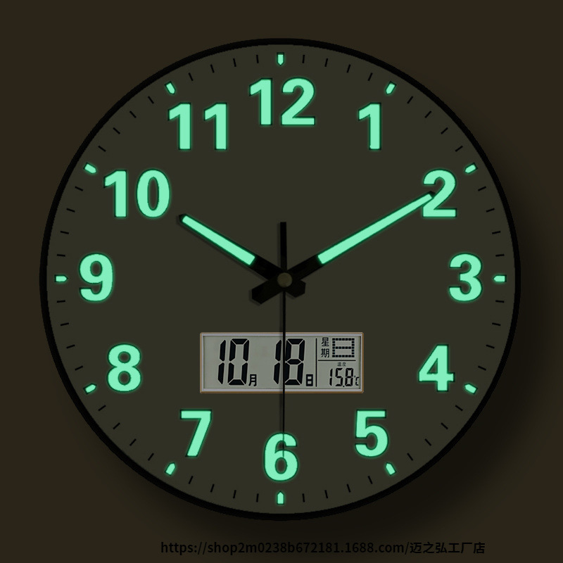 빛나는 벽 시계 침실 조용한 창조적 인 시계 홈 라운드 시계 빛 럭셔리 벽 시계 교수형 시계