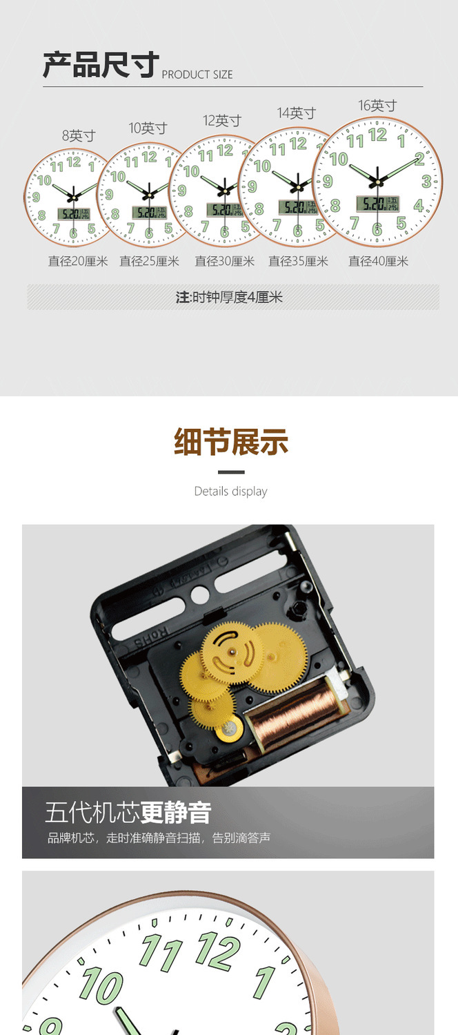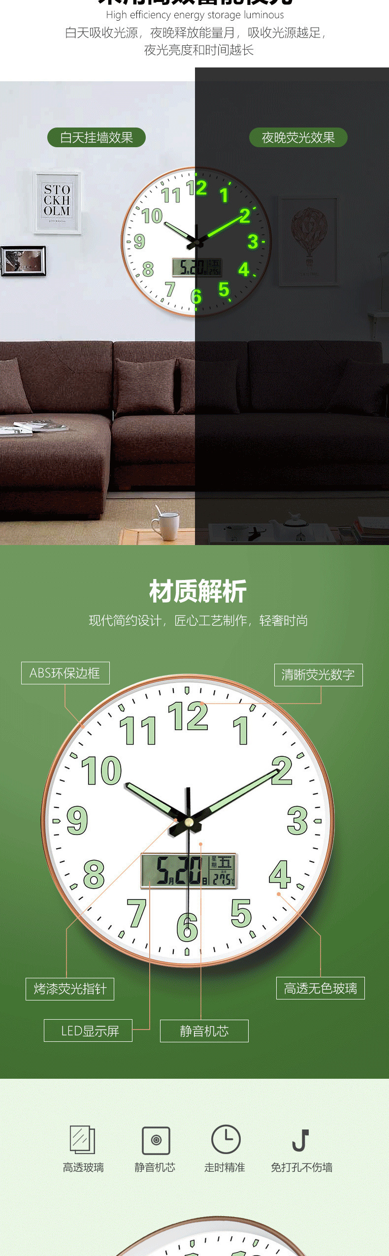 빛나는 벽 시계 침실 조용한 창조적 인 시계 홈 라운드 시계 빛 럭셔리 벽 시계 교수형 시계스토어 가기