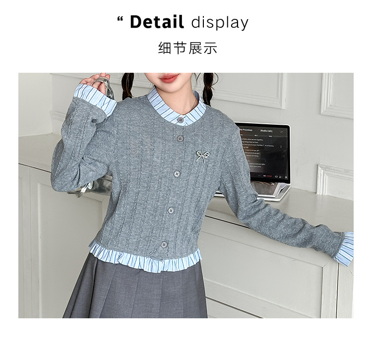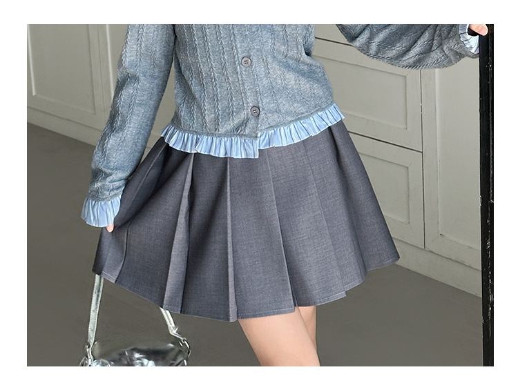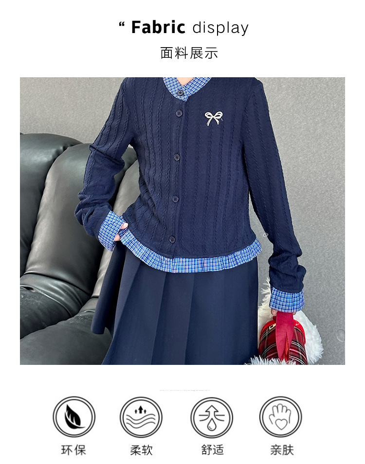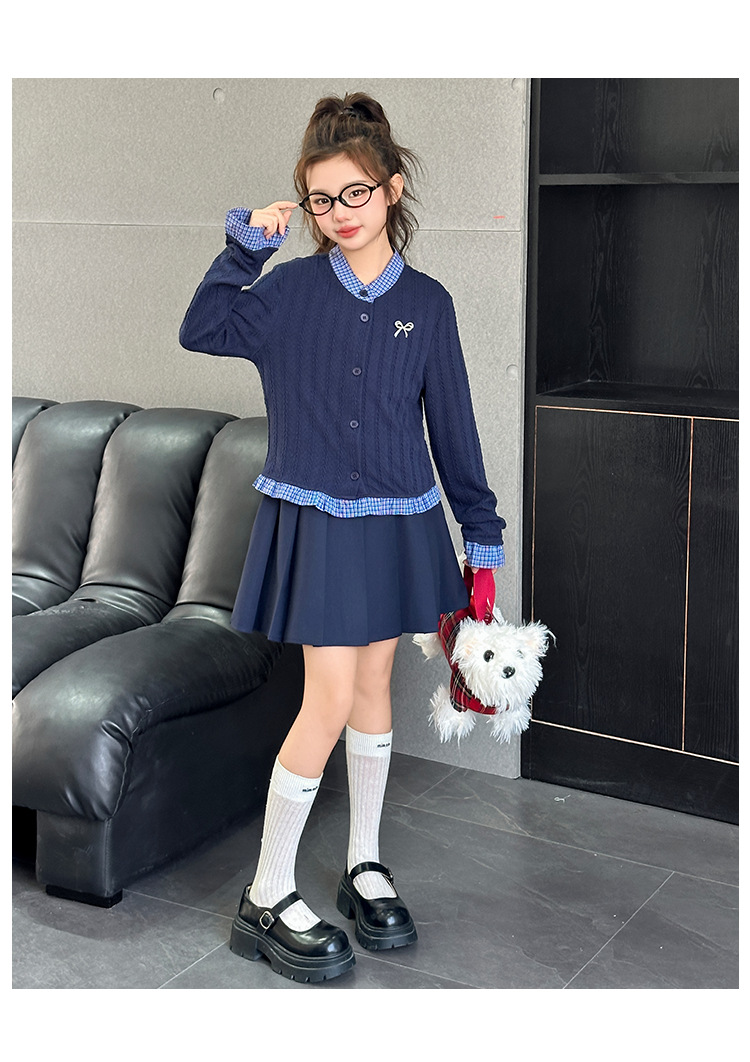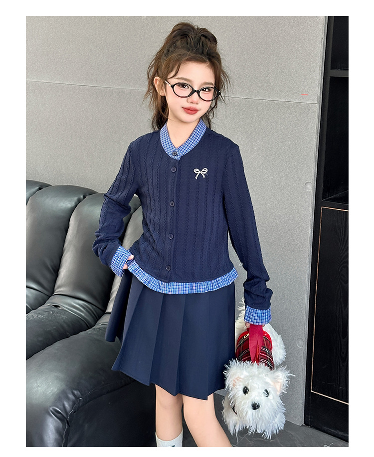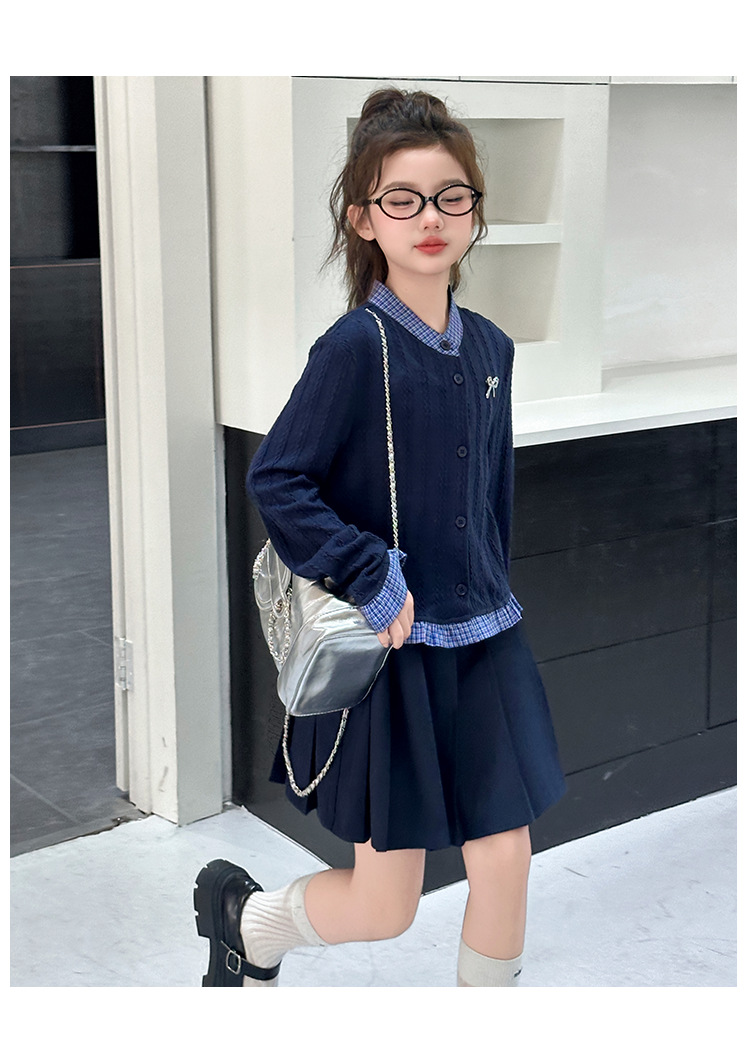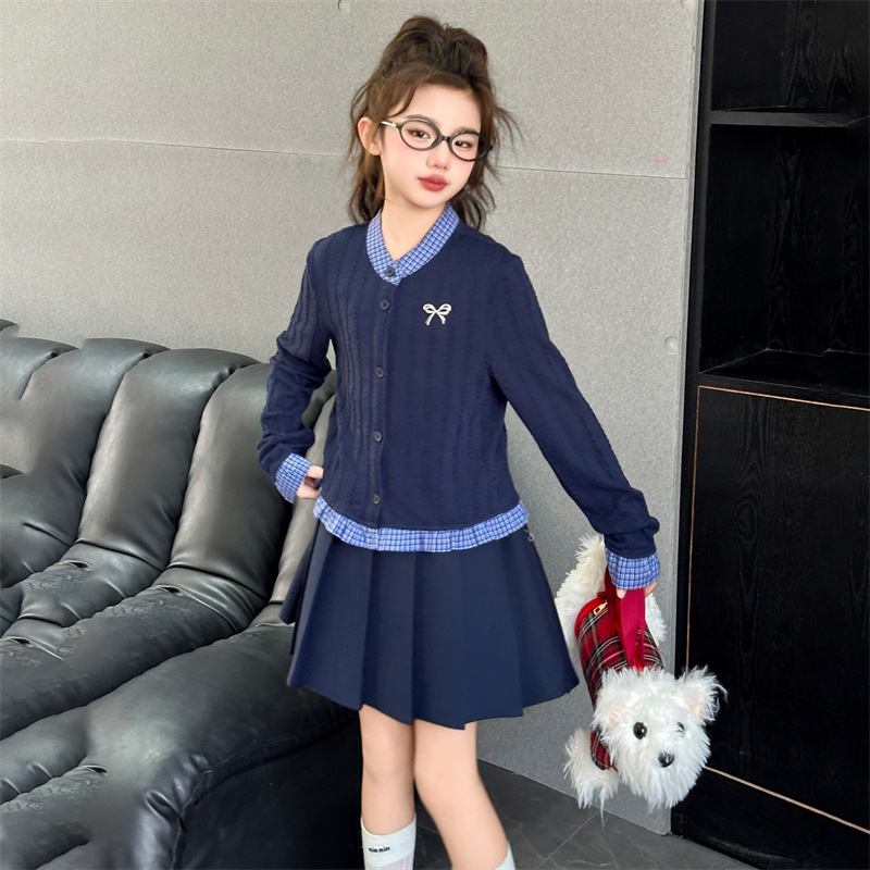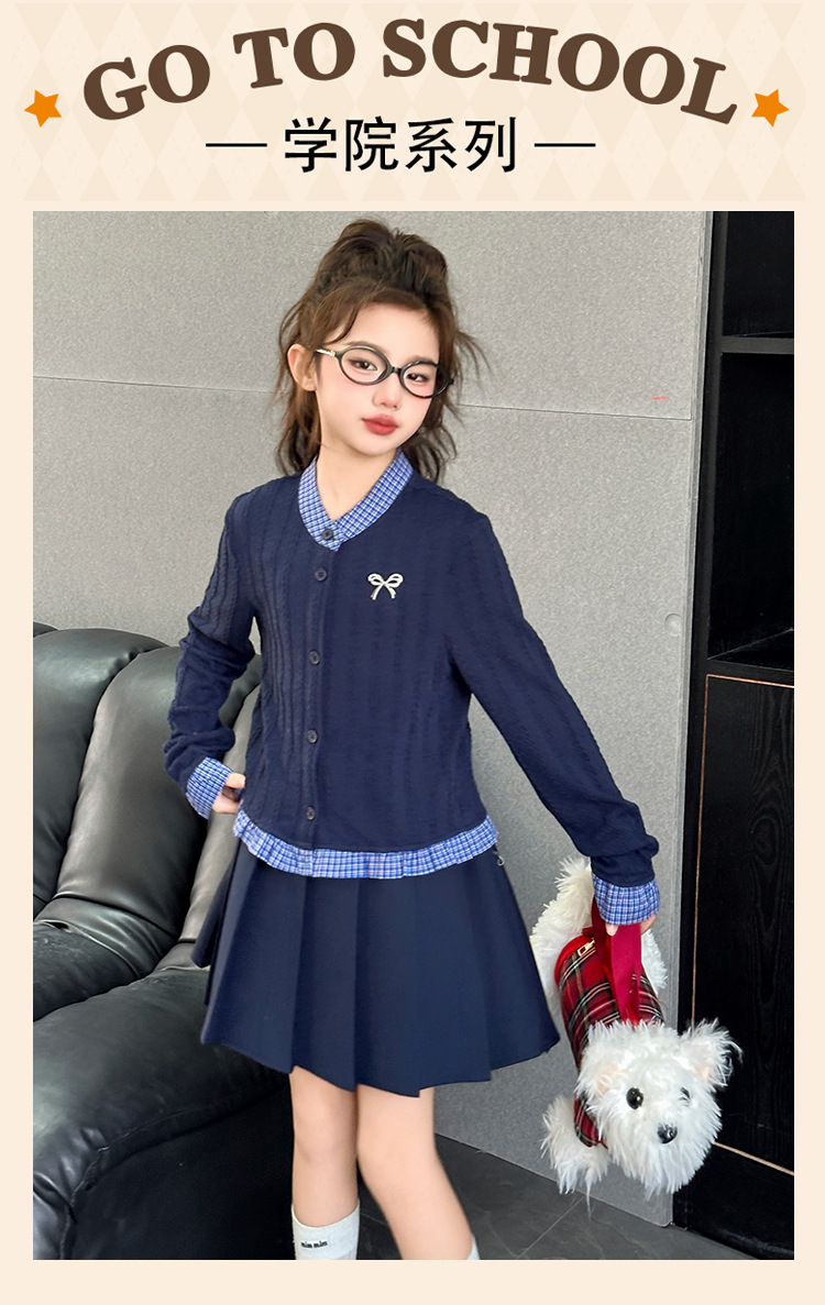 소녀의 가짜 두 조각 세트 2025 봄 새 스타일 소녀의 주름 긴 소매 아카데미 스타일 주름 치마 두 조각 세트스토어 가기