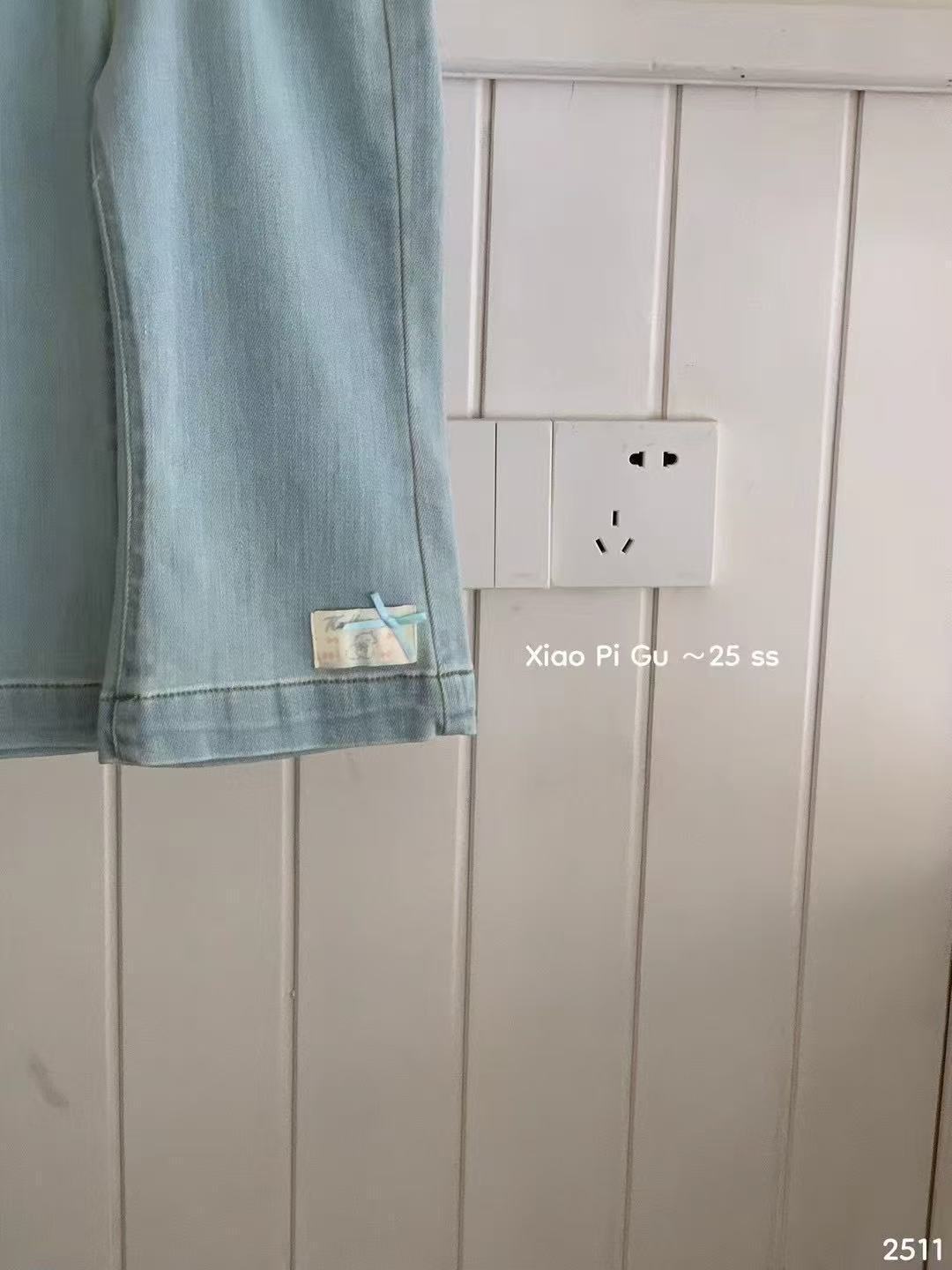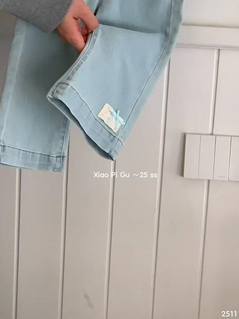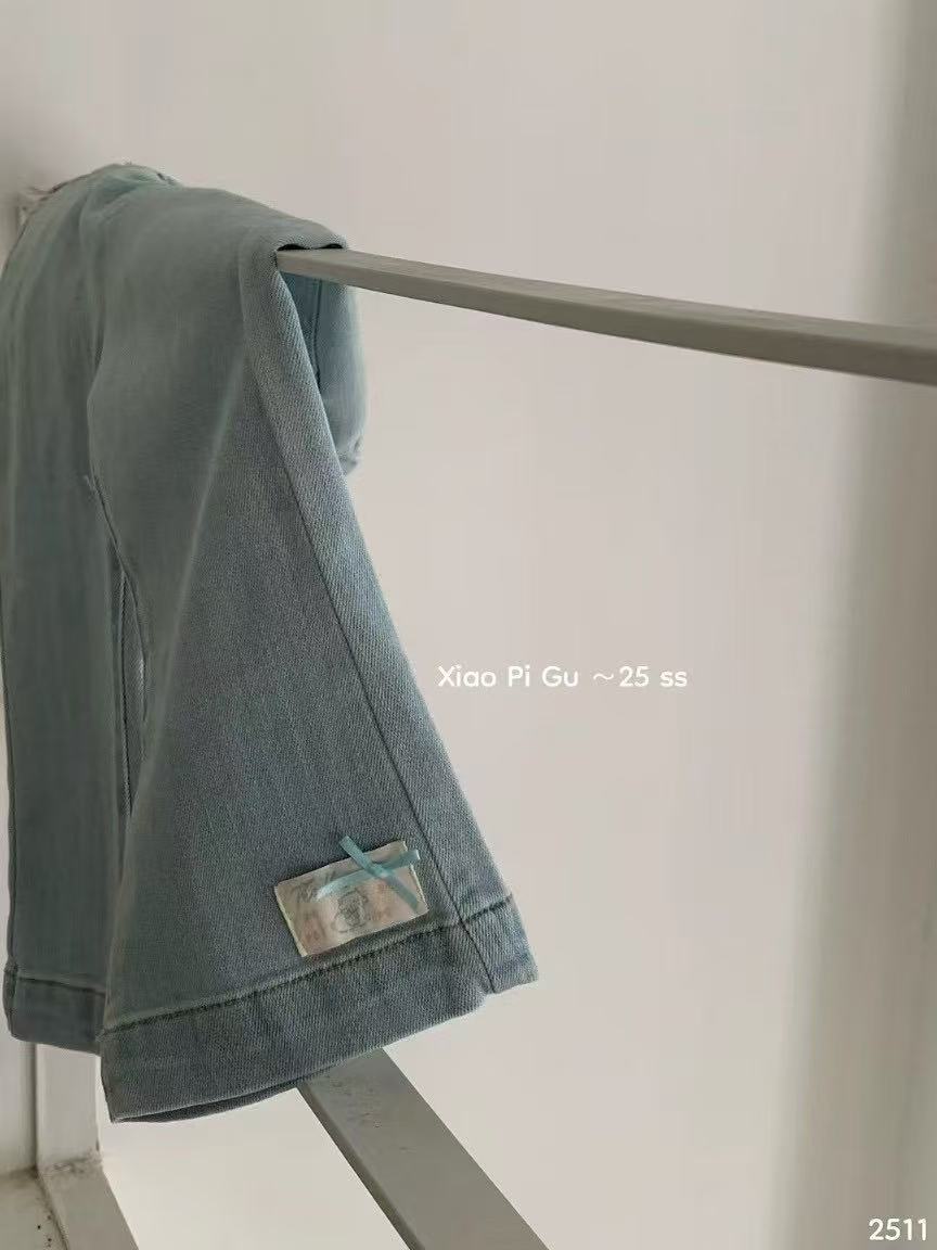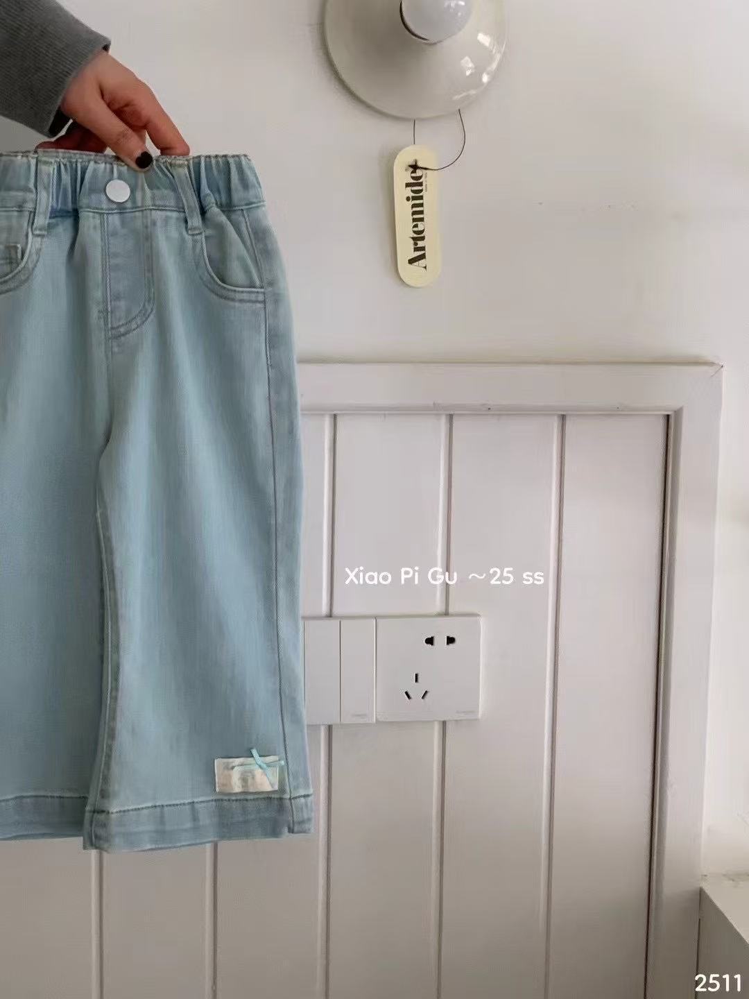 한국 아동복 소녀 봄 세트 2025 새로운 어린 소녀 레이스 니트 조끼 데님 마이크로 바지스토어 가기