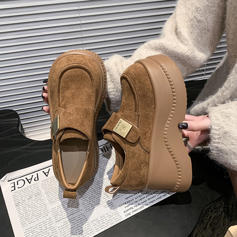 정품 가죽 플랫폼 버칸 신발 여성 2025 봄 새로운 스타일 작은 높이 8cm 캐주얼 벨크로 사랑 신발