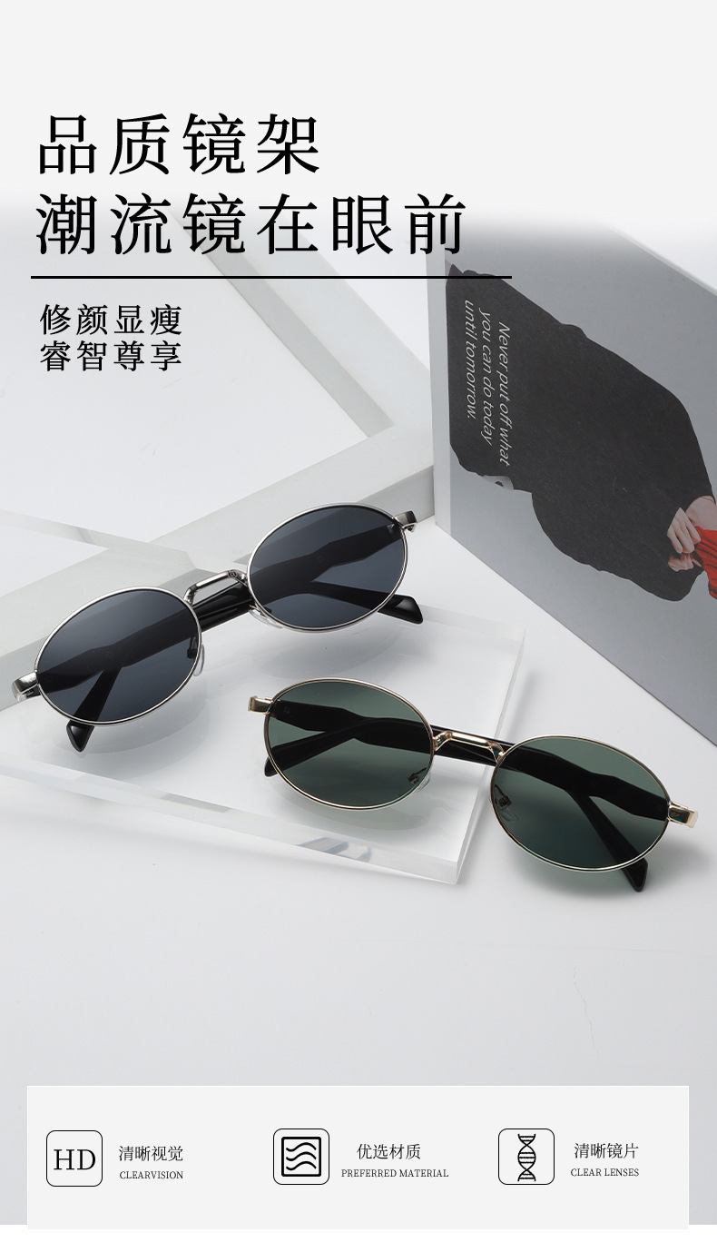 2025 국경 유럽과 미국 스타일의 새로운 선글라스 여성 금속 타원형 패션 조커 스트리트 선글라스 도매스토어 가기