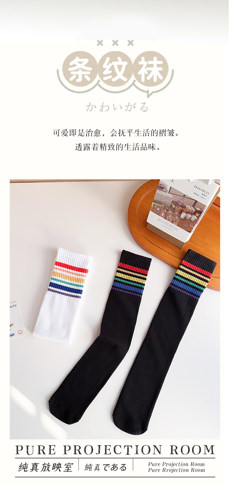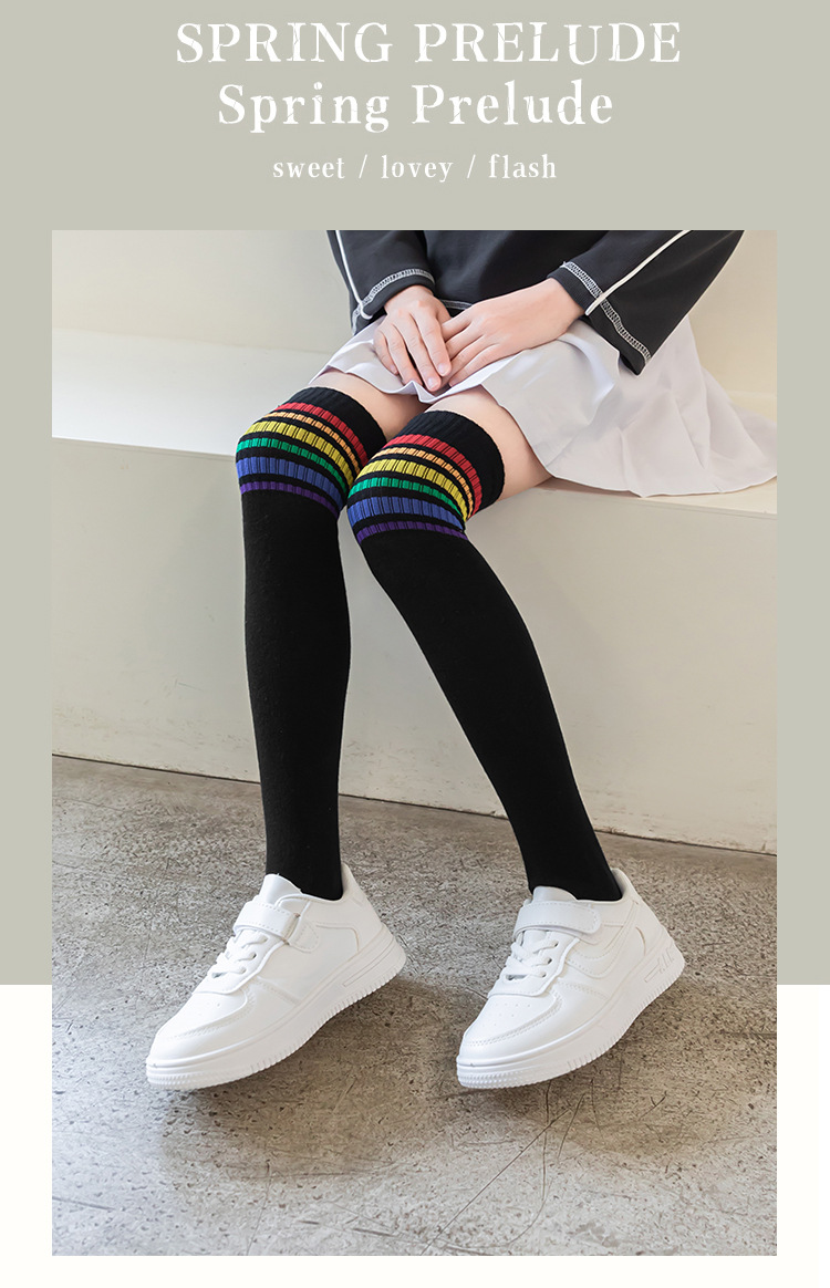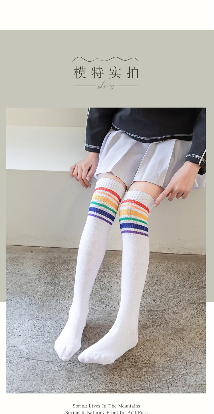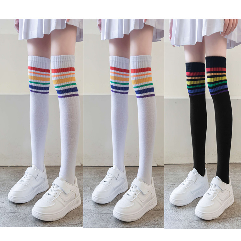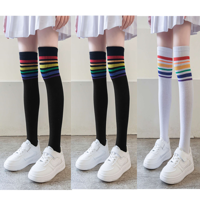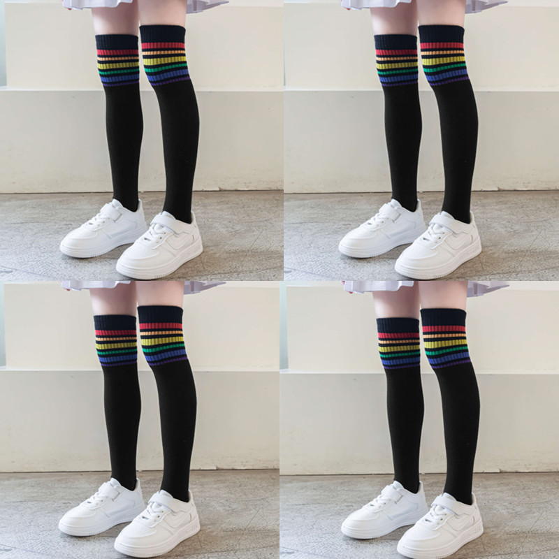어린이 스타킹 봄과 가을 얇은 중간 튜브 무릎 높은 양말 어린 소녀 무릎 높은 축구 양말 아기 무지개 양말