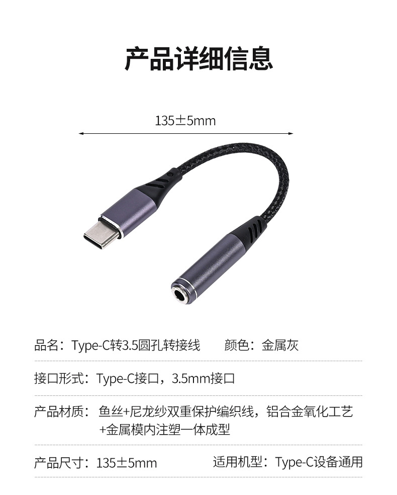 직접 공급 Type-C 장비 일반 전송 3.5 라운드 홀 어댑터 오디오 이어폰 케이블 컨버터 오디오 케이블 도매스토어 가기