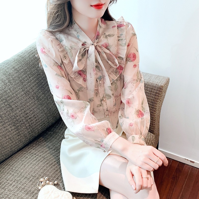 부드러운 스타일 우아한 쉬폰 탑 여성의 2025 이른 봄 새로운 활 우아한 작은 셔츠 긴 소매 기본 셔츠스토어 가기