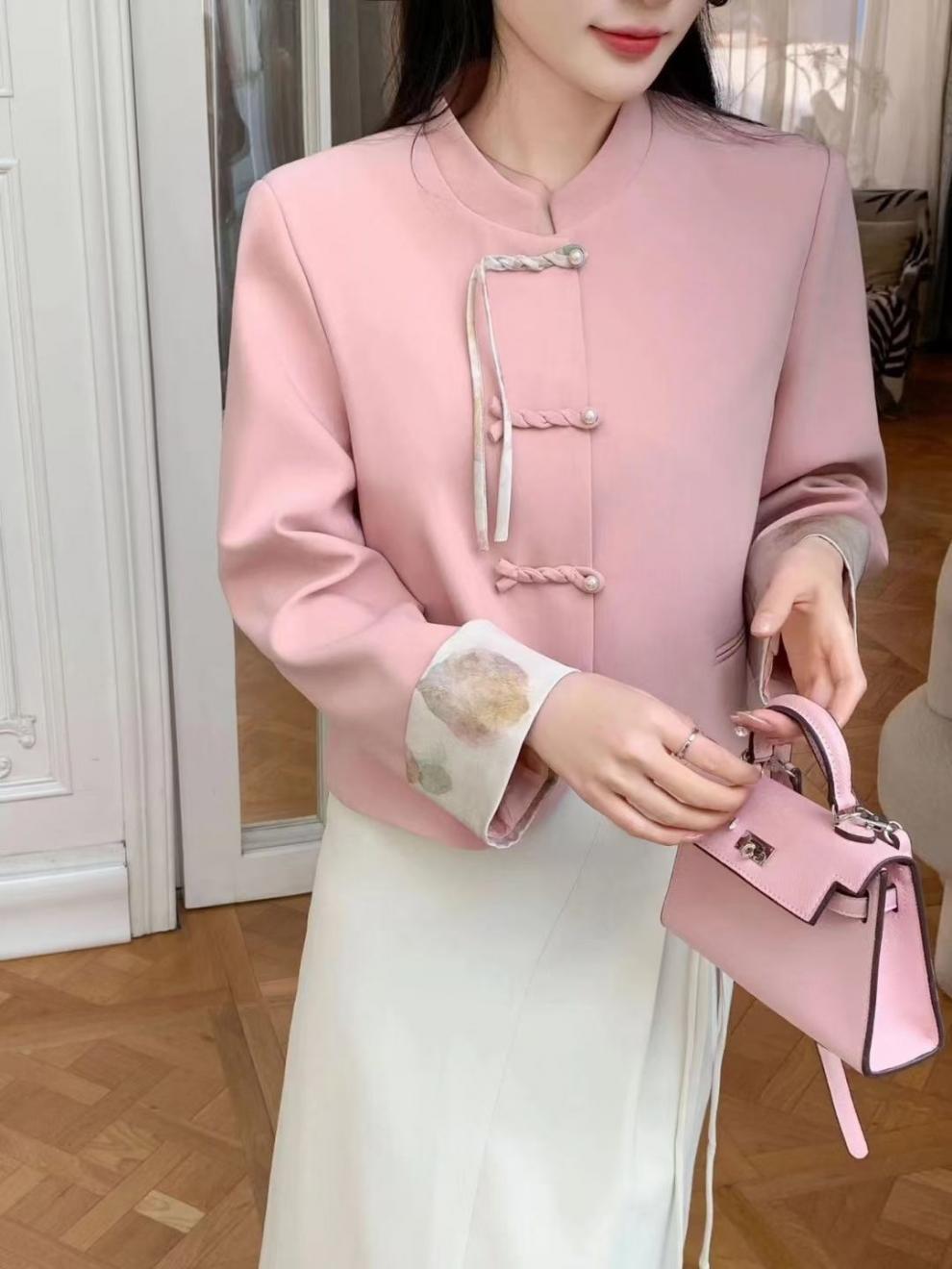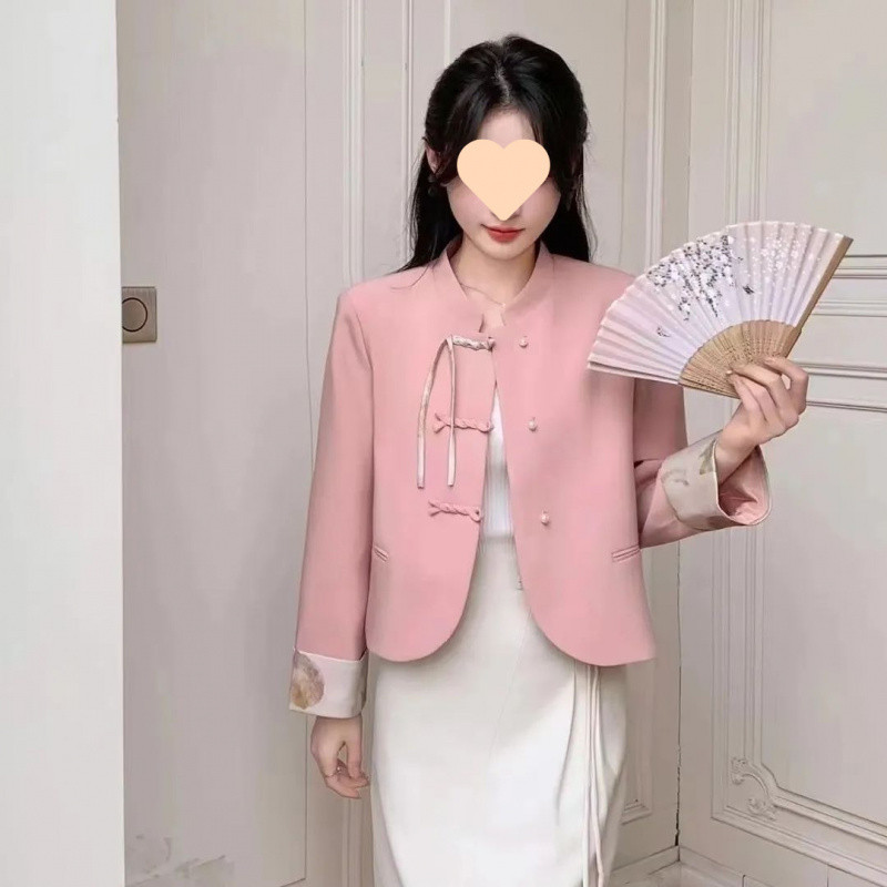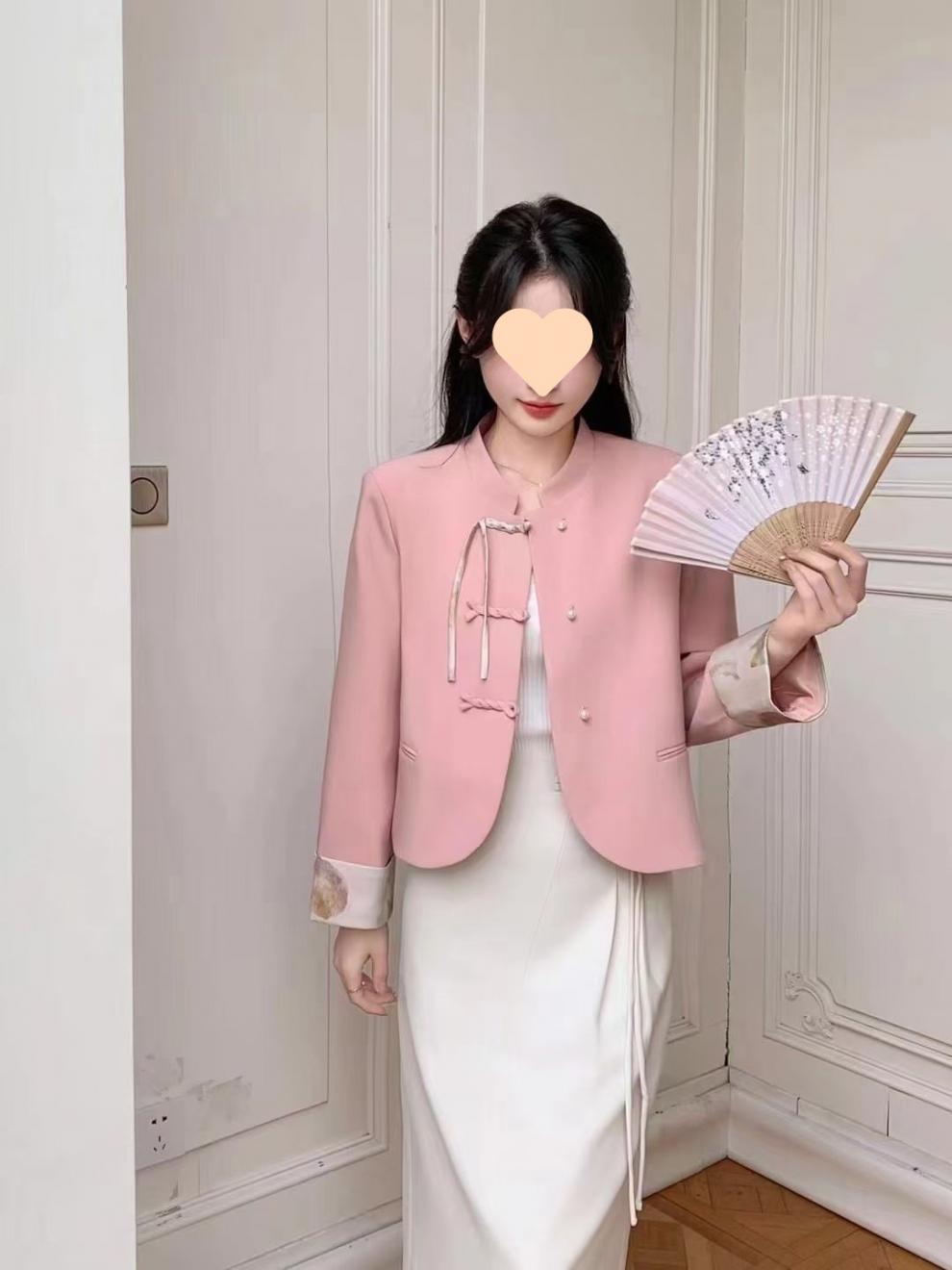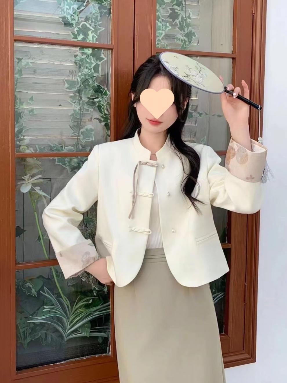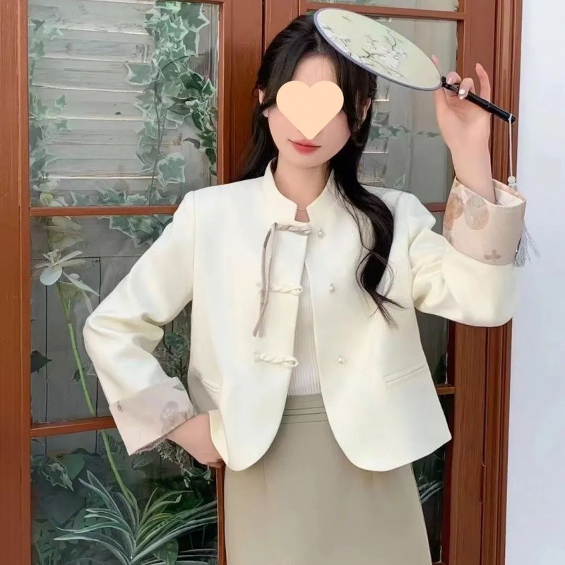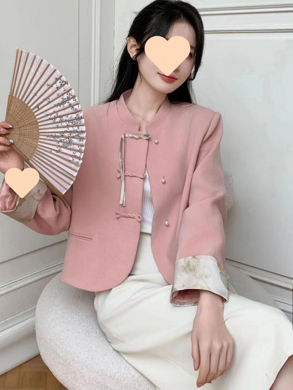 A6C 새로운 중국 스타일 국가 스타일 코트 여성의 짧은 향기로운 스타일 2024 봄과 가을 새로운 중국 요소 버클 개선 된 기질스토어 가기