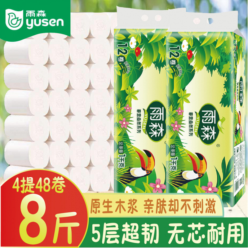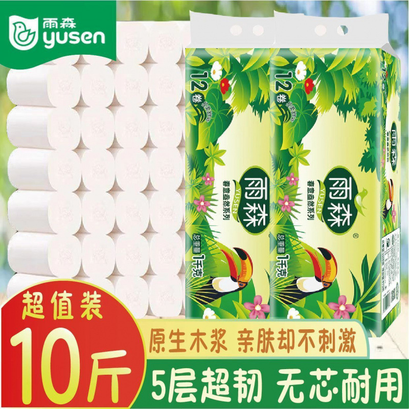 Yusen 화장지 롤 종이 10kg 60 롤 5 층 젖은 물 가정용 코리스 화장지 2kg 유연한 여성과 아기 12 롤스토어 가기