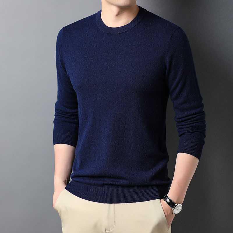 가을 스웨터 얇은 풀오버 캐주얼 스웨터 라운드 넥 한국 남성 비즈니스 슬림핏 솔리드 컬러 니트 남성스토어 가기