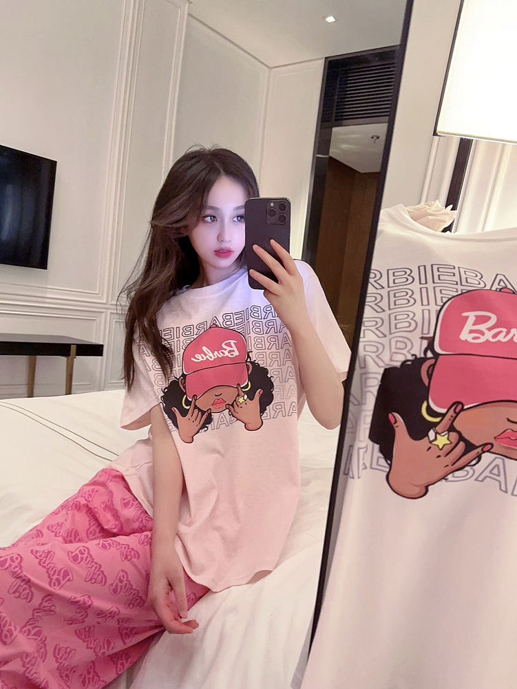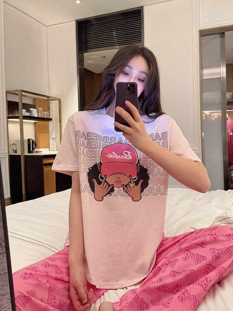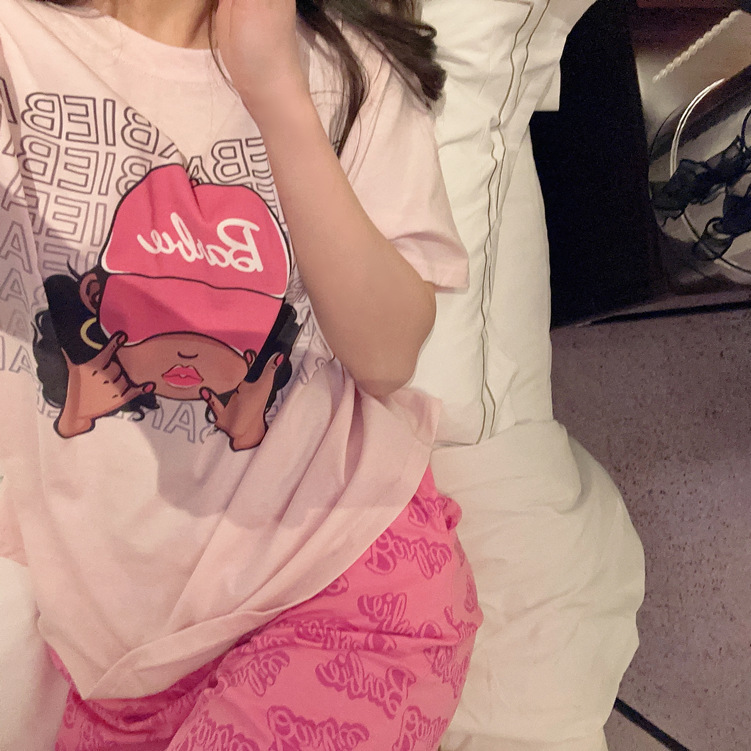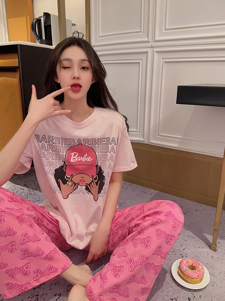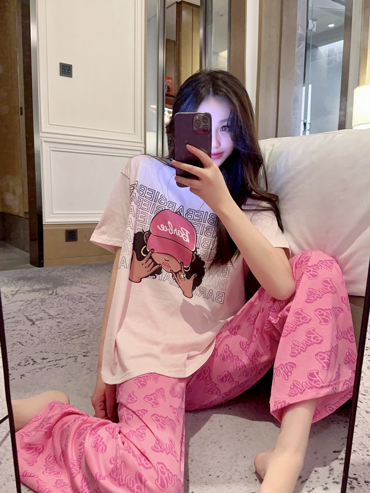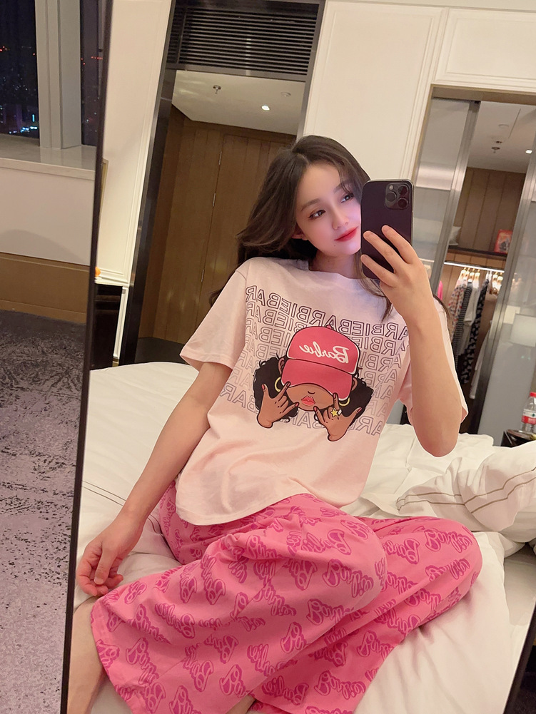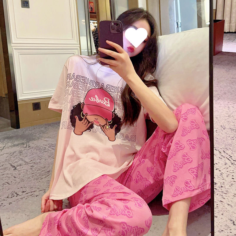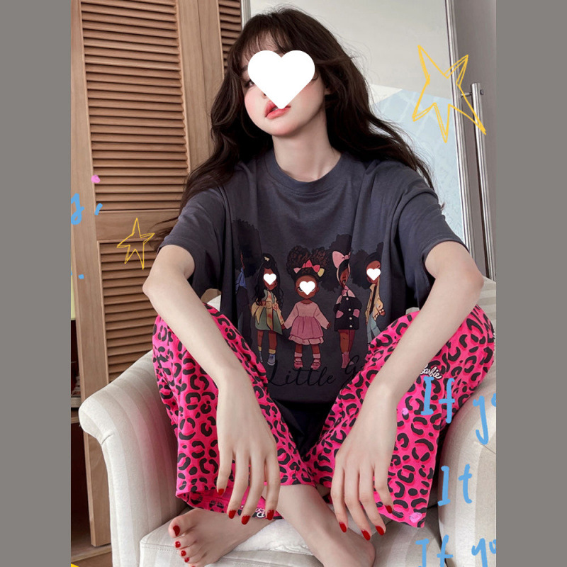 2025 새로운 모달 파자마 여성의 봄과 여름면 짧은 소매 바지는 플러스 사이즈 가을 가정 의류 세트 밖에서 입을 수 있습니다.